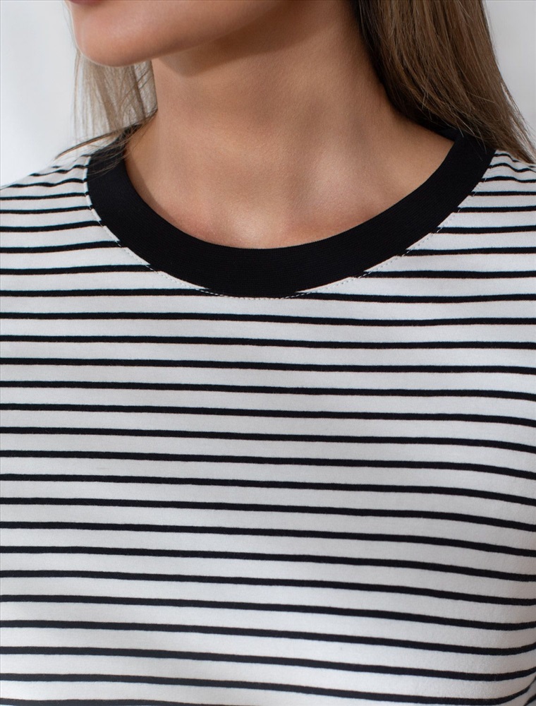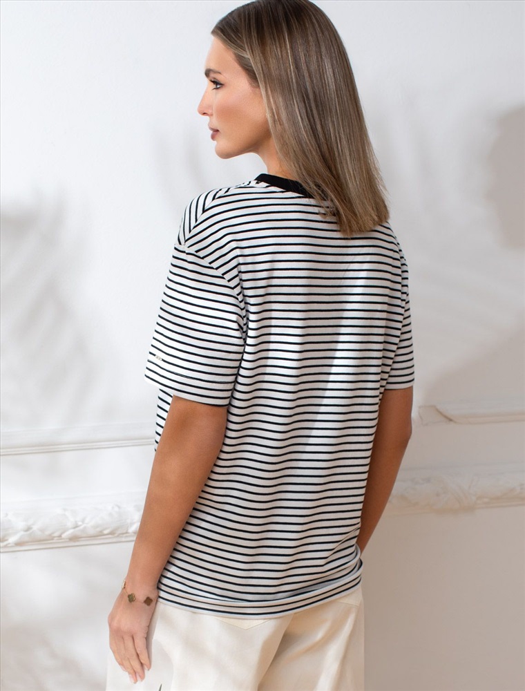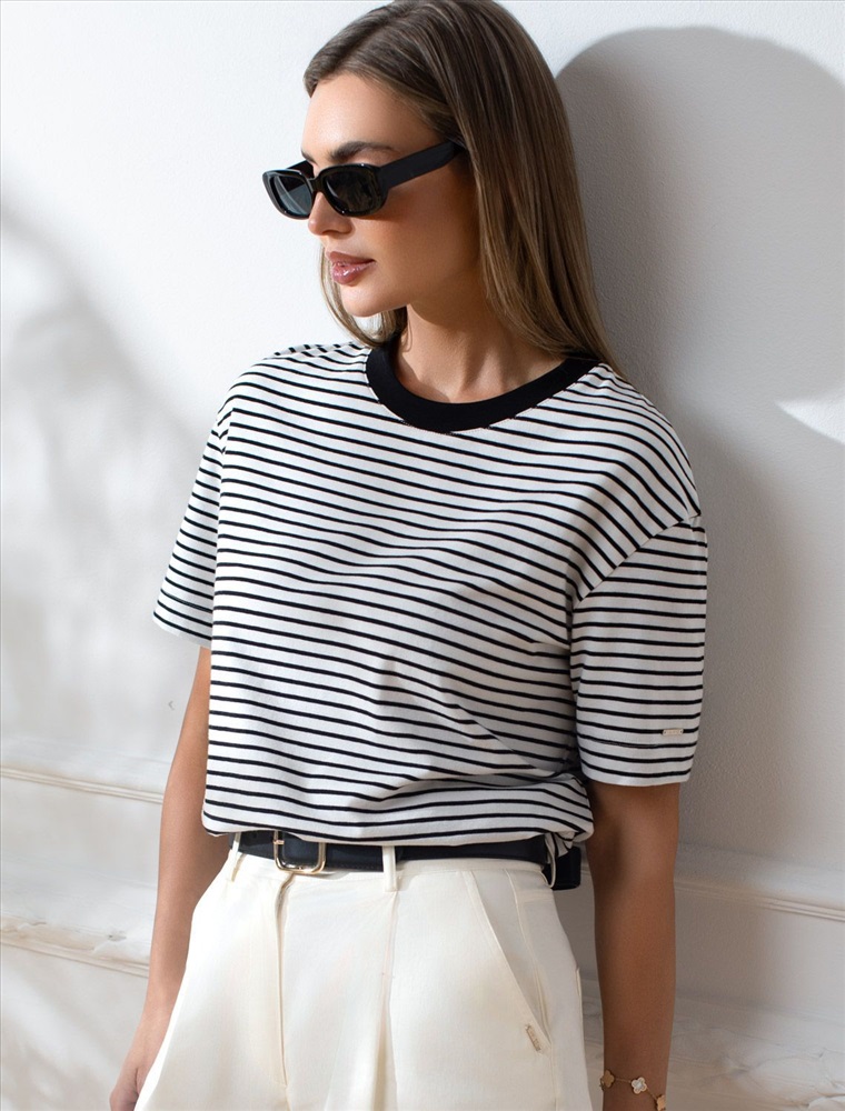Плотность: 170 Г/м2 Свободная футболка в черно-белую полоску из премиального хлопка плотностью 170 Г/м2 станет универсальным решением для создания стильного и комфортного образа. Футболка прямого кроя идеально садится на любую фигуру, обеспечивая свободу движений. Дышащая ткань из натурального хлопка делает изделие легким и приятным к телу, что особенно важно в теплое время года, отлично пропускает воздух и не вызывает дискомфорта при длительном ношении. Модная футболка в полоску добавляет яркости образу, сохраняя баланс между минимализмом и выразительностью. Базовая футболка хорошо держит форму, немного тянется благодаря качественной плотной ткани с добавлением эластана, что гарантирует долговечность даже при частой носке. Подходит для больших размеров до 56 включительно, свободная посадка позволяет чувствовать себя уверенно в любой ситуации. Это выбор для тех, кто ценит удобство без ущерба стилю. Мягкость материала делает футболку подходящей даже для беременных женщин или обладательниц чувствительной кожи. Актуальные цвета подчеркивают современность футболки, делая ее отличным вариантом как для повседневной носки, так и более праздничных случаев. Круглый вырез горловины дополняет общий минималистичный дизайн изделия, создавая аккуратный силуэт. Такой фасон уместен для работы в офисе, для городского стиля, дома, в неформальной обстановке или даже на деловых встречах. Комментарии к товару