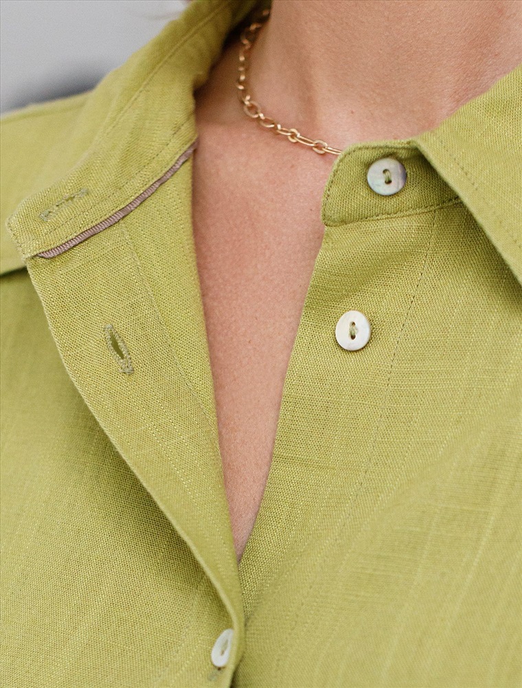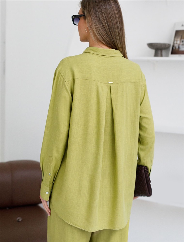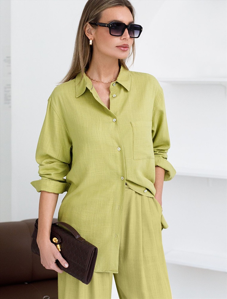 Свободная удлиненная блузка с карманом салатового цвета изо льна с вискозой, плотностью 200 Г/м2 - идеальный вариант для весны и лета. Сочетание льна и вискозы обеспечивает комфорт и прохладу в жаркие дни. Материал хорошо драпируется и мягко прилегает к фигуре, создавая струящиеся складки. Эта эффектная блузка сочетает в себе современный крой, удобство и стиль. Отложной воротник придает образу элегантность, спущенная линия плеча — модный и расслабленный акцент, а удлиненный крой создает красивый и легкий силуэт. Пуговицы по всей длине делают льняную рубашку особенно практичной, вы можете носить ее растегнутой, в качестве верхнего слоя. Длинная рубашка отлично подойдет на высокий рост, а так же на большие размеры, поможет скрыть возможные недостатки и сохранит при этом стильный образ. Легкая блузка подходит для повседневного гардероба, смотрится красиво, обеспечивая максимальный комфорт.