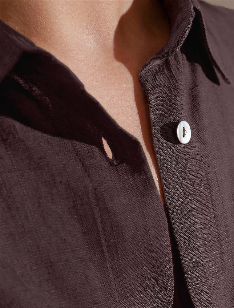 Свободная удлиненная блузка с карманом коричневого цвета изо льна с вискозой, плотностью 200 Г/м2 - идеальный вариант для весны и лета. Сочетание льна и вискозы обеспечивает комфорт и прохладу в жаркие дни. Материал хорошо драпируется и мягко прилегает к фигуре, создавая струящиеся складки. Эта эффектная блузка сочетает в себе современный крой, удобство и стиль. Отложной воротник придает образу элегантность, спущенная линия плеча — модный и расслабленный акцент, а удлиненный крой создает красивый и легкий силуэт. Пуговицы по всей длине делают льняную рубашку особенно практичной, вы можете носить ее растегнутой, в качестве верхнего слоя. Длинная рубашка отлично подойдет на высокий рост, а так же на большие размеры, поможет скрыть возможные недостатки и сохранит при этом стильный образ. Легкая блузка подходит для повседневного гардероба, смотрится красиво, обеспечивая максимальный комфорт.