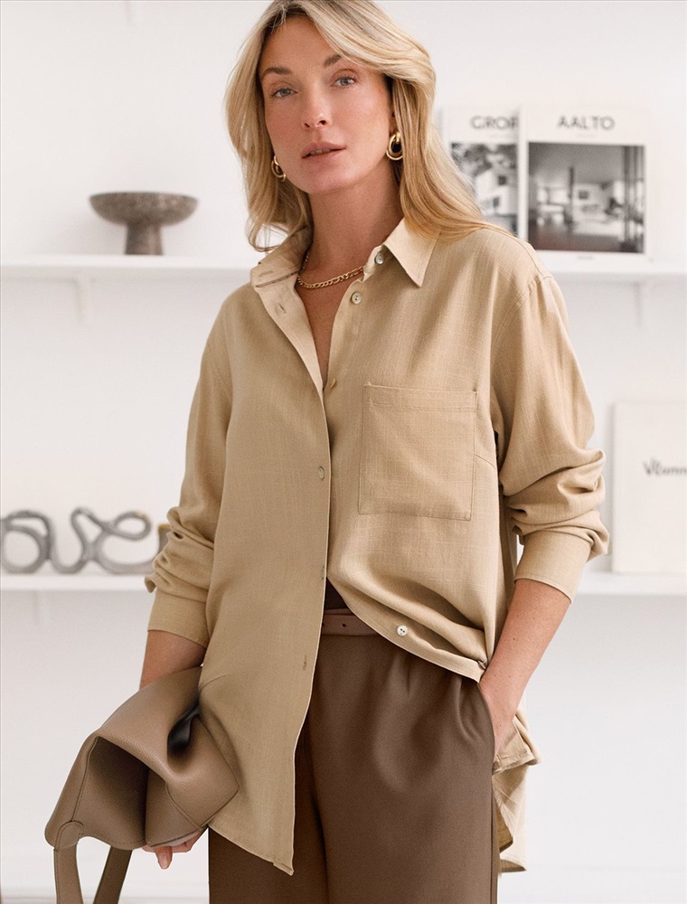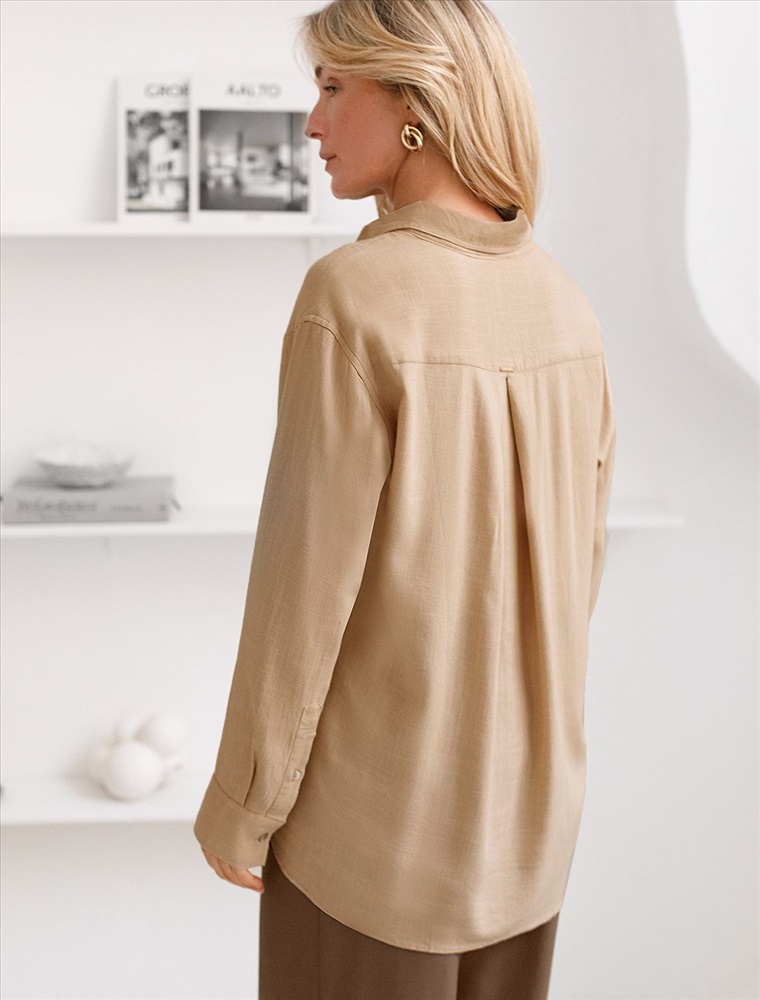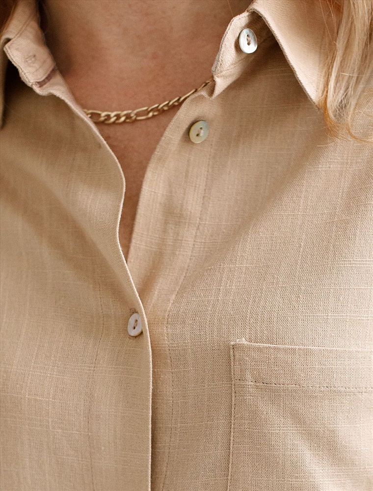 Плотность: 200 Г/м2 Свободная удлиненная блузка с карманом бежевого цвета изо льна с вискозой, плотностью 200 Г/м2 - идеальный вариант для весны и лета. Сочетание льна и вискозы обеспечивает комфорт и прохладу в жаркие дни. Материал хорошо драпируется и мягко прилегает к фигуре, создавая струящиеся складки. Эта эффектная блузка сочетает в себе современный крой, удобство и стиль. Отложной воротник придает образу элегантность, спущенная линия плеча — модный и расслабленный акцент, а удлиненный крой создает красивый и легкий силуэт. Пуговицы по всей длине делают льняную рубашку особенно практичной, вы можете носить ее растегнутой, в качестве верхнего слоя. Длинная рубашка отлично подойдет на высокий рост, а так же на большие размеры, поможет скрыть возможные недостатки и сохранит при этом стильный образ. Легкая блузка подходит для повседневного гардероба, смотрится красиво, обеспечивая максимальный комфорт. Рекомендуем сочетать с артикулом: D24.308 Комментарии к товару