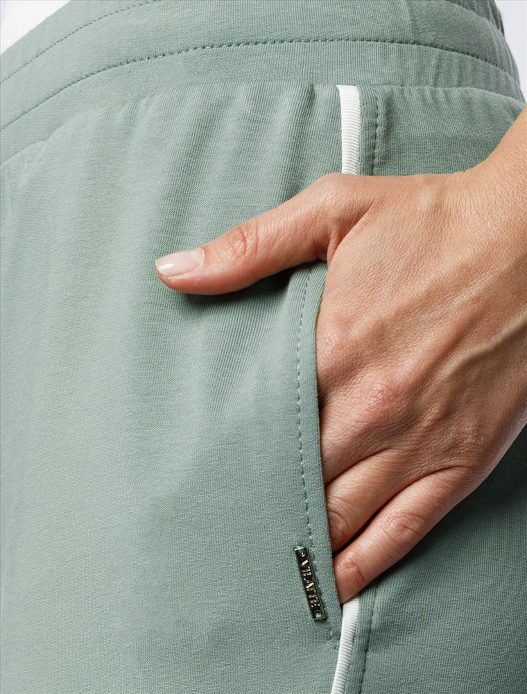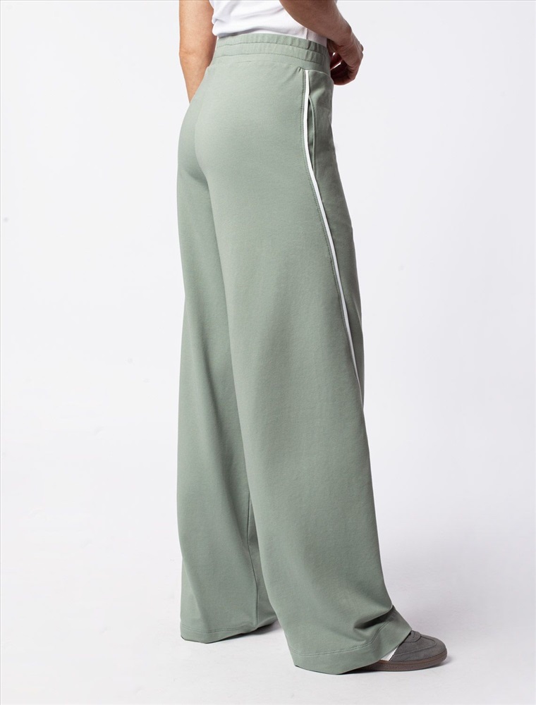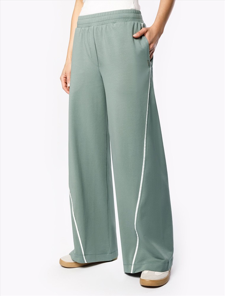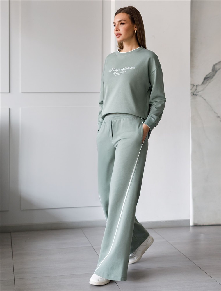 Брюки свободного кроя с контрастными лампасами выполнены из эластичного футера двухнитки. Модель дополнена боковыми карманами. Пояс на резинке фиксируется внутренним хлопковым шнуром. Диагональные визуально стройнят силуэт, а образ становится динамичным. Сочетайте изделие в костюме с паркой D49.076 и свитшотом D49.073