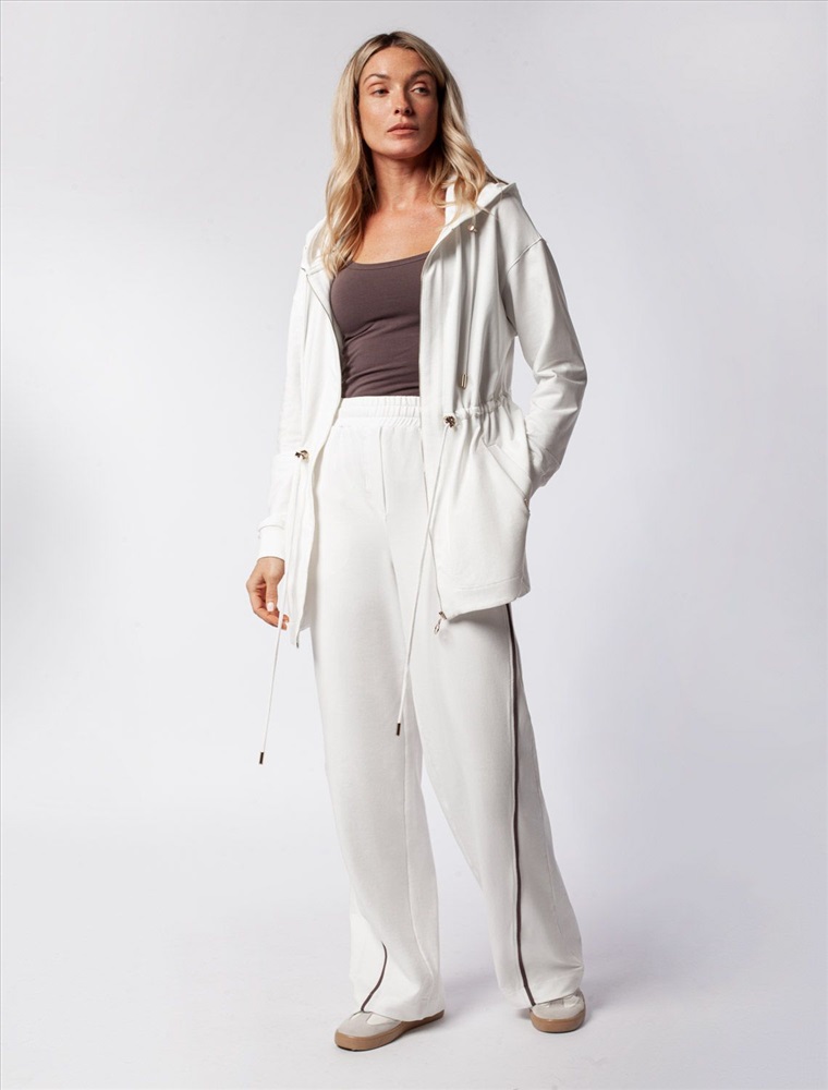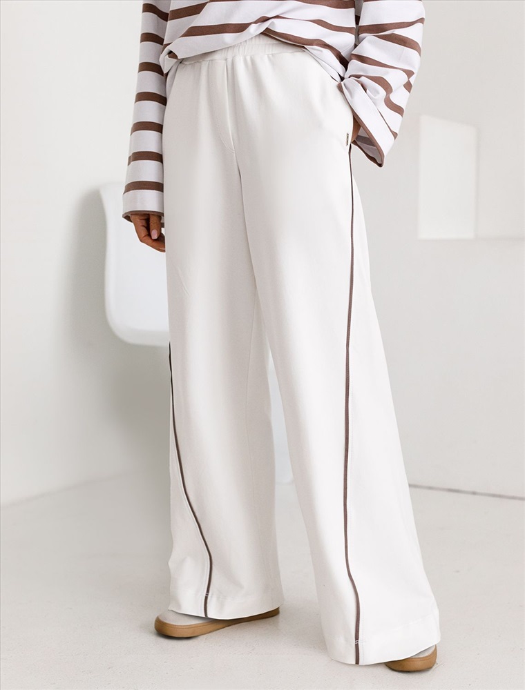 Плотность: 240 Г/м2 Параметры модели на первом фото: Рост 172, бюст 88, талия 64, бедра 88 Размер товара на первом фото: 42 Брюки свободного кроя с контрастными лампасами выполнены из эластичного футера двухнитки. Модель дополнена боковыми карманами. Пояс на резинке фиксируется внутренним хлопковым шнуром. Диагональные визуально стройнят силуэт, а образ становится динамичным. Сочетайте изделие в костюме с паркой D49.076 и свитшотом D49.073 Комментарии к товару