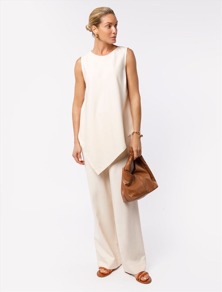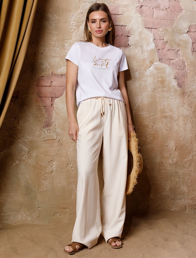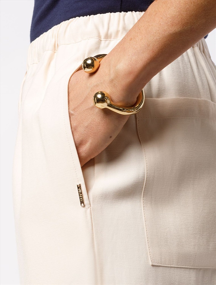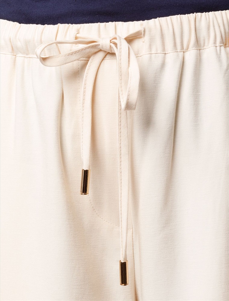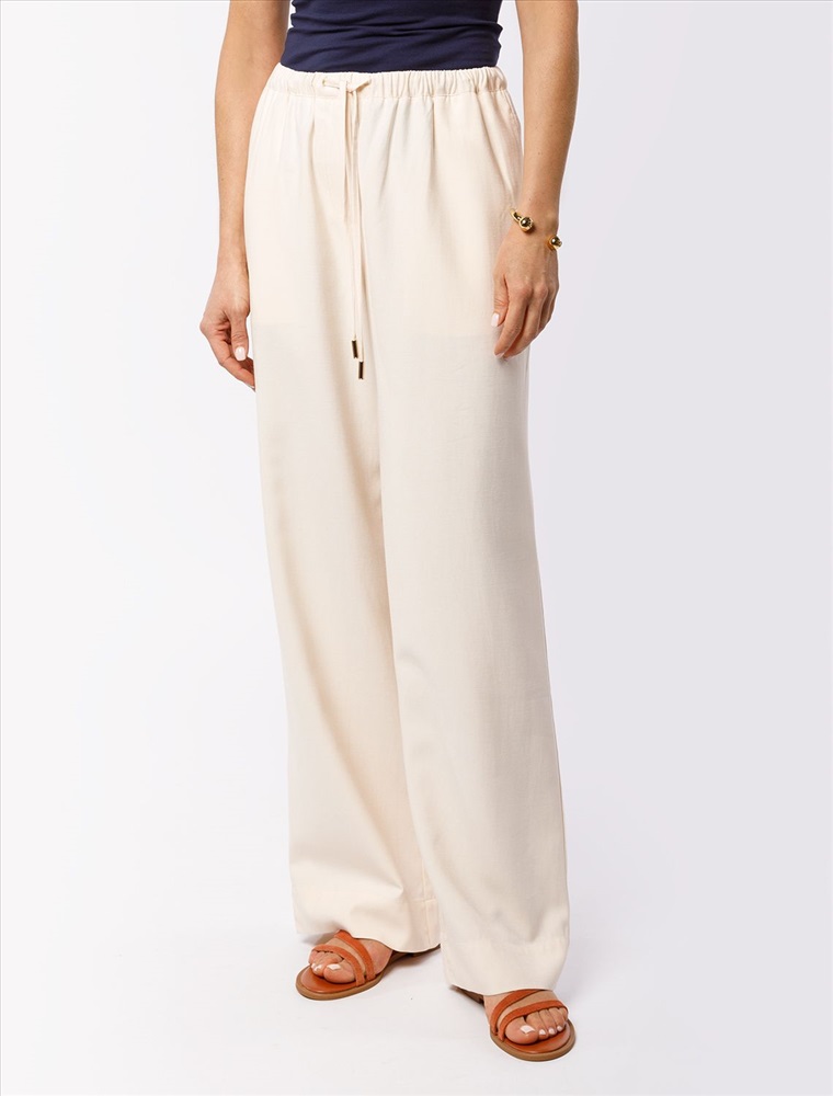 Параметры модели на первом фото: Рост 172, бюст 88, талия 64, бедра 88 Брюки свободного кроя выполнены из плотного лиоцелла. Модель дополнена карманами и поясом с эластичной резинкой и регулируемым шнурком с золотистой фурнитурой. Ткань изделия отлично держит форму, плавно драпируется и не просвечивает. В теплое время года приятно охлаждает кожу. Добавление синтетических волокон в составе изделия, предотвращает сминаемостьи поддерживает формоустойчивость. Брюки сочетаются в костюме с топом D23.063, блузкой D29.266, D29.267 и жилетом D27.002