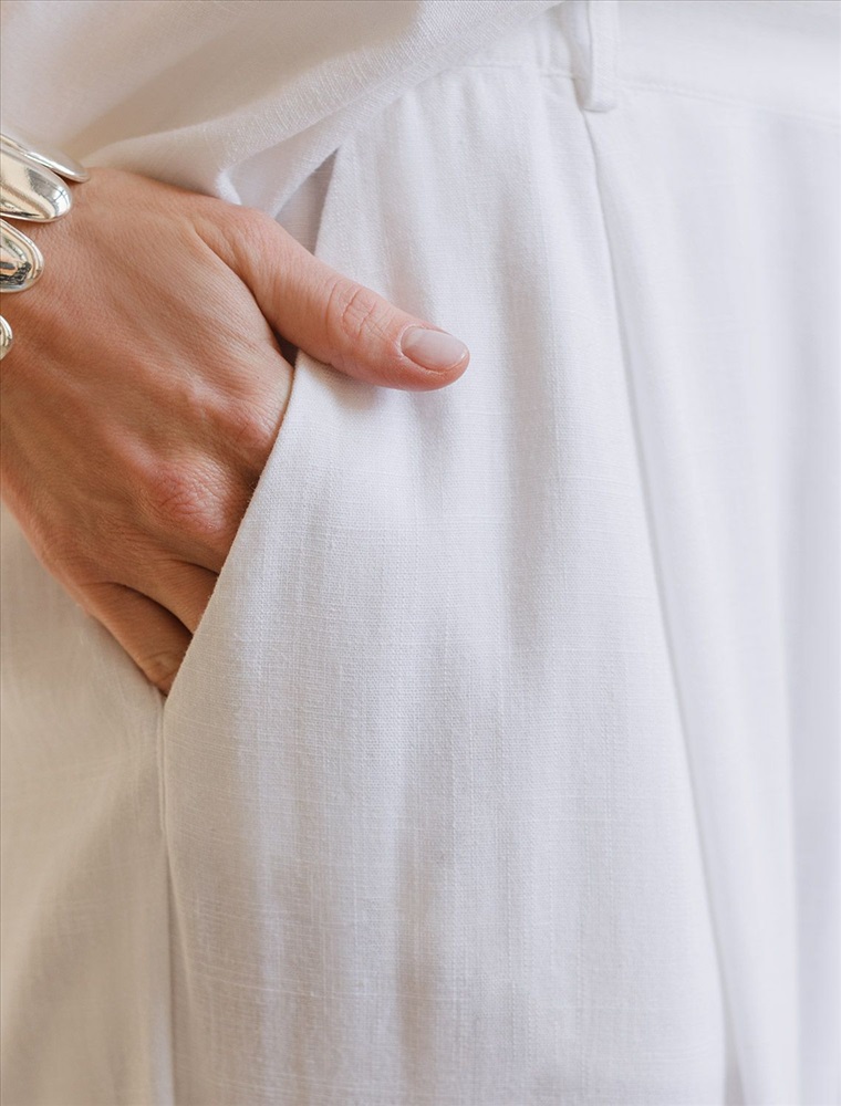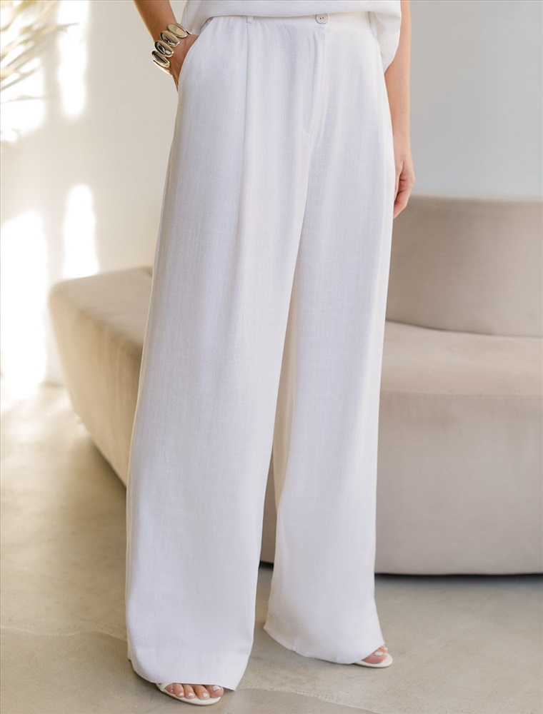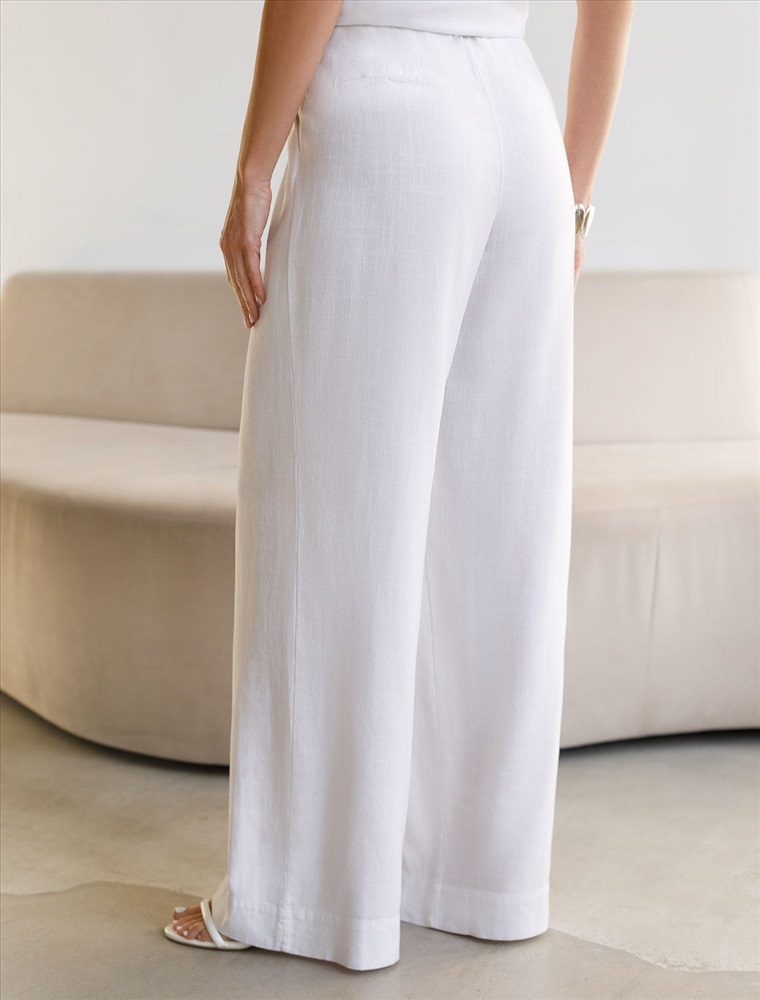 Свободные брюки палаццо бежевого цвета изо льна с вискозой, плотностью 200 Г/м2 — выбор, который легко выделит в любой обстановке. Свободные длинные брюки с высокой посадкой создают идеальный силуэт, визуально вытягивают и стройнят фигуру. Натуральный состав ткани обладает высокой воздухопроницаемостью, хорошо драпируется и мягко прилегает к фигуре, создавая струящиеся складки. Мягкая эластичная резинка, встроенная в пояс брюк, обеспечивает идеальную посадку по фигуре, не сдавливая талию и гарантируя максимальный комфорт при движении. В повседневных брюках будет очень комфортно, благодаря правильной регуляции температуры тела. Брюки подходят на маленький и высокий рост, а так же на любую фигуру, позволяя подчеркнуть достоинства и скрыть возможные недостатки. Летние льняные брюки отлично сочетаются с монохромным верхом для вытягивания силуэта, с ними можно создавать эффектные наряды как на выход, так и для ежедневных рабочих дел или простых прогулок, от делового шика до повседневного кэжуал.