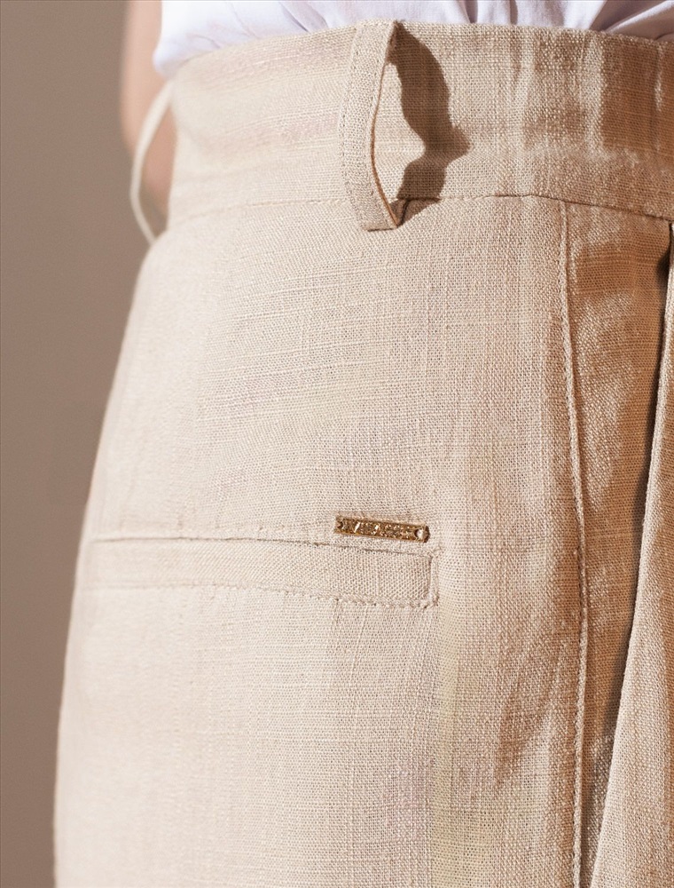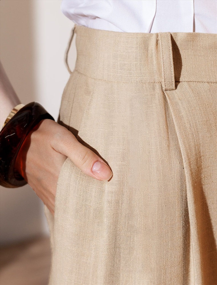 Плотность: 200 Г/м2 Свободные брюки палаццо бежевого цвета изо льна с вискозой, плотностью 200 Г/м2 — выбор, который легко выделит в любой обстановке. Свободные длинные брюки с высокой посадкой создают идеальный силуэт, визуально вытягивают и стройнят фигуру. Натуральный состав ткани обладает высокой воздухопроницаемостью, хорошо драпируется и мягко прилегает к фигуре, создавая струящиеся складки. Мягкая эластичная резинка, встроенная в пояс брюк, обеспечивает идеальную посадку по фигуре, не сдавливая талию и гарантируя максимальный комфорт при движении. В повседневных брюках будет очень комфортно, благодаря правильной регуляции температуры тела. Брюки подходят на маленький и высокий рост, а так же на любую фигуру, позволяя подчеркнуть достоинства и скрыть возможные недостатки. Летние льняные брюки отлично сочетаются с монохромным верхом для вытягивания силуэта, с ними можно создавать эффектные наряды как на выход, так и для ежедневных рабочих дел или простых прогулок, от делового шика до повседневного кэжуал. Рекомендуем сочетать с артикулами: D23.076, D23.077, D29.357, D29.345, D29.358