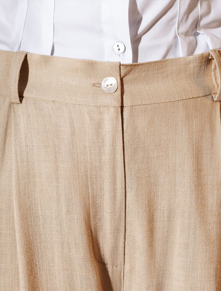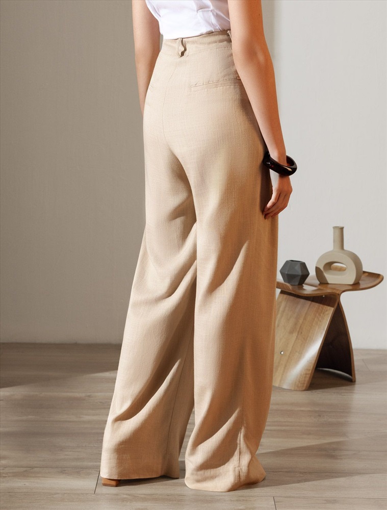 Свободные брюки палаццо на эластичном поясе изо льна с вискозой