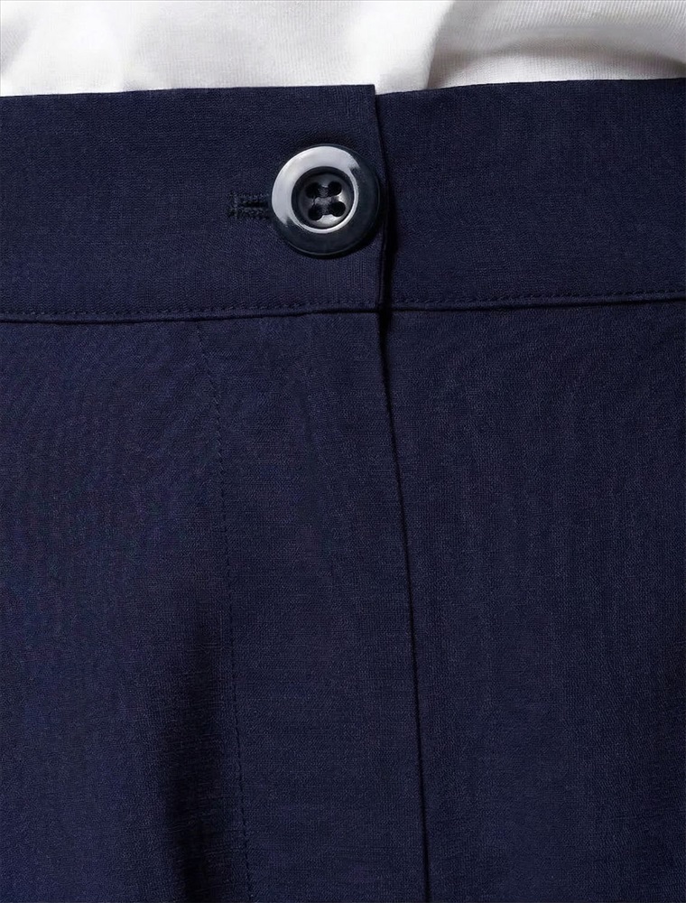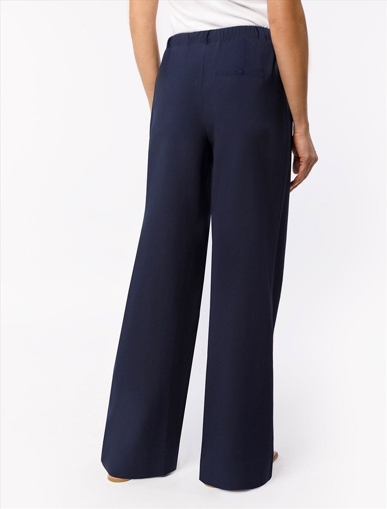 Плотность: 180 Г/м2 Брюки темно-синего цвета свободного кроя выполнены из плотного лиоцелла. Лиоцелл это более дорогой и экологичный вариант вискозы, очень прочный и шелковистый. Свободные прямые брюки с высокой посадкой визуально вытягивают силуэт и стройнят. Эластичный пояс на мягкой резинке гарантирует комфорт в талии и отлично сядет на любую фигуру. Удобные карманы по бокам и свободный крой делают эти брюки базовым элементом гардероба. Летние брюки отлично сочетаются с монохромным верхом, с ними можно создавать эффектные наряды как на выход, так и для ежедневных рабочих дел или простых прогулок, от делового шика до повседневного кэжуал. Рекомендуем сочетать с артикулами: D29.360, D29.359, D29.354 Комментарии к товару