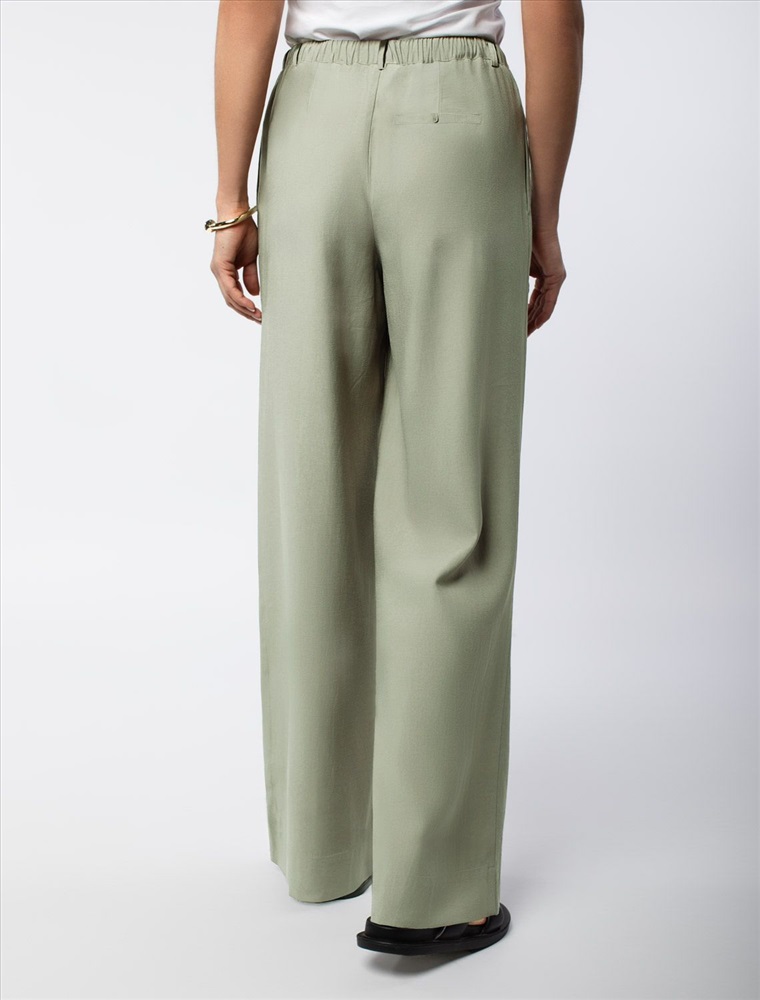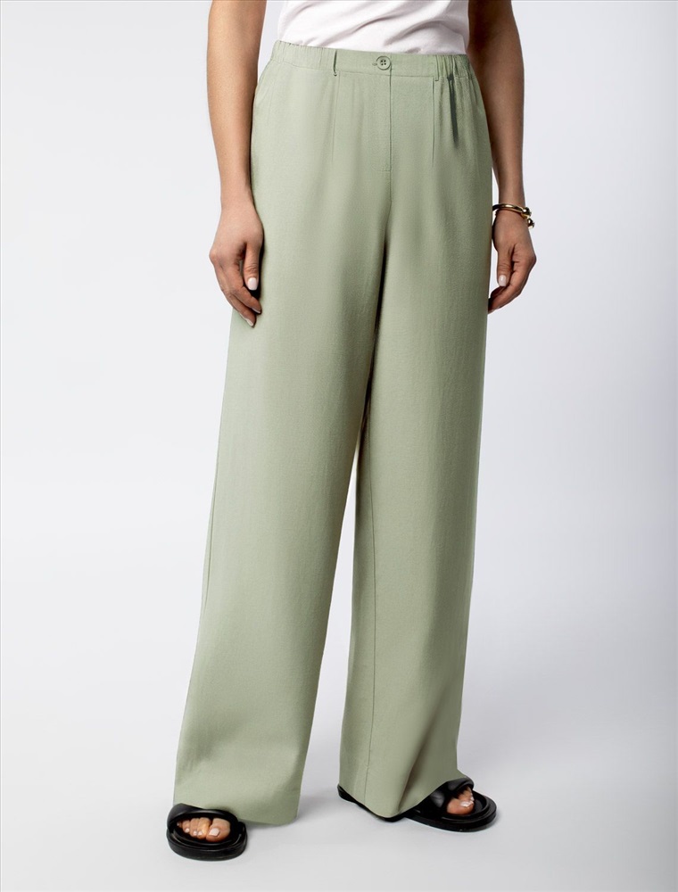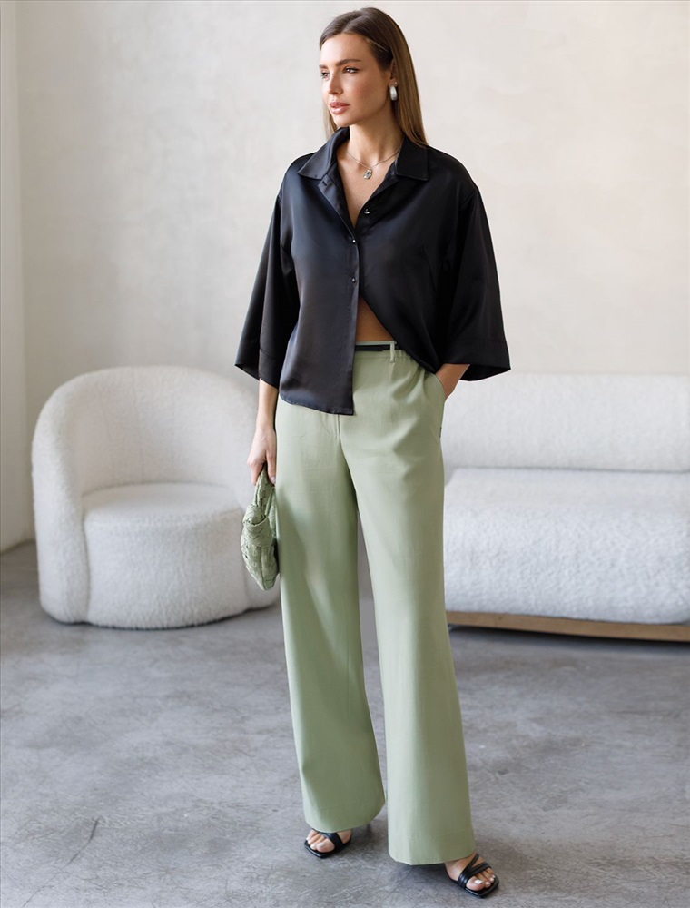 Плотность: 180 Г/м2 Брюки светло-зеленого цвета свободного кроя выполнены из плотного лиоцелла. Лиоцелл это более дорогой и экологичный вариант вискозы, очень прочный и шелковистый. Свободные прямые брюки с высокой посадкой визуально вытягивают силуэт и стройнят. Эластичный пояс на мягкой резинке гарантирует комфорт в талии и отлично сядет на любую фигуру. Удобные карманы по бокам и свободный крой делают эти брюки базовым элементом гардероба. Летние брюки отлично сочетаются с монохромным верхом, с ними можно создавать эффектные наряды как на выход, так и для ежедневных рабочих дел или простых прогулок, от делового шика до повседневного кэжуал. Рекомендуем сочетать с артикулами: D29.360, D29.359, D29.354 Комментарии к товару