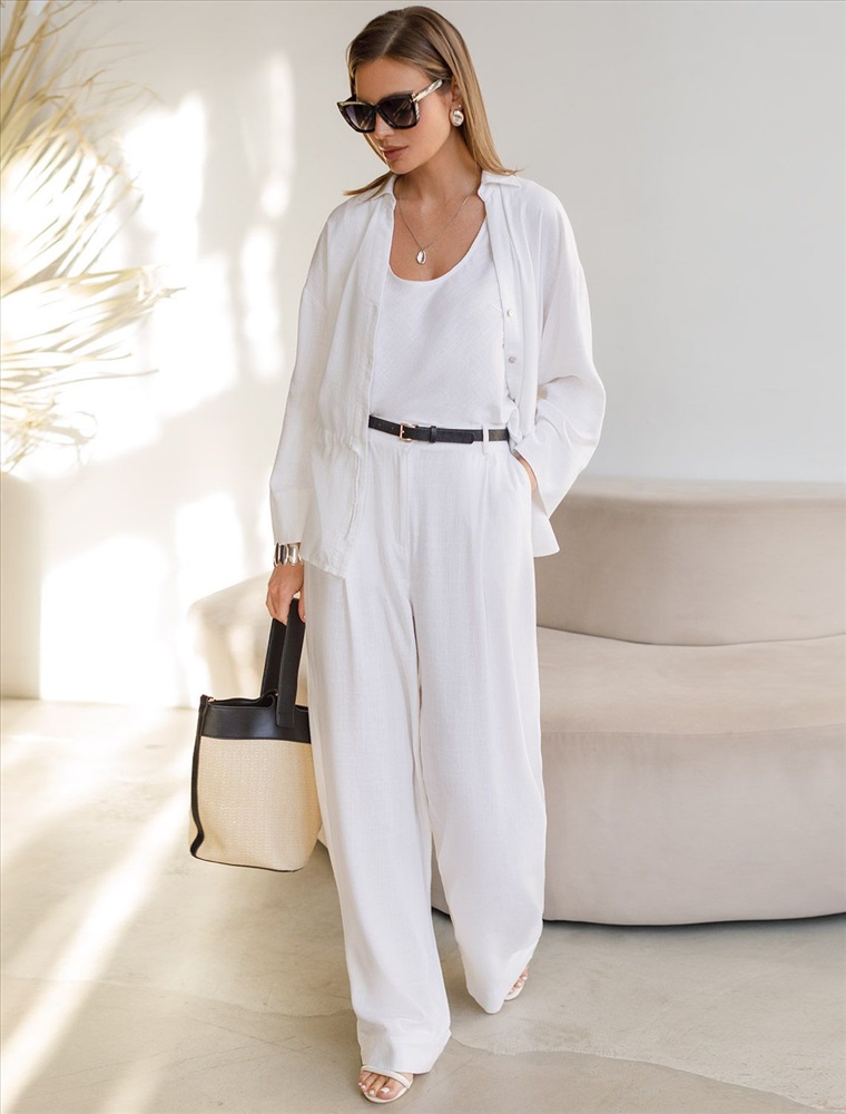 Лаконичный топ белого цвета без застежек с U-вырезом выполнен изо льна с вискозой, плотносью 200 Г/м2. Сочетание льна и вискозы обеспечивает комфорт и прохладу в жаркие дни. Свободный топ на широких бретелях будет идеальным выбором для лета и весны, позволяя ощущать комфорт даже при высокой температуре воздуха. Особенность этого летнего топа — шитый по косой, он хорошо драпируется и мягко прилегает к фигуре, создавая струящиеся складки. Свободный крой топа обеспечивает комфорт, легкость и свободу движений, открытое декольте подчеркивает изысканность образа и женственность силуэта. Этот красивый топ подойдет для создания любого стильного повседневного образа, на работу или на важное мероприятие.