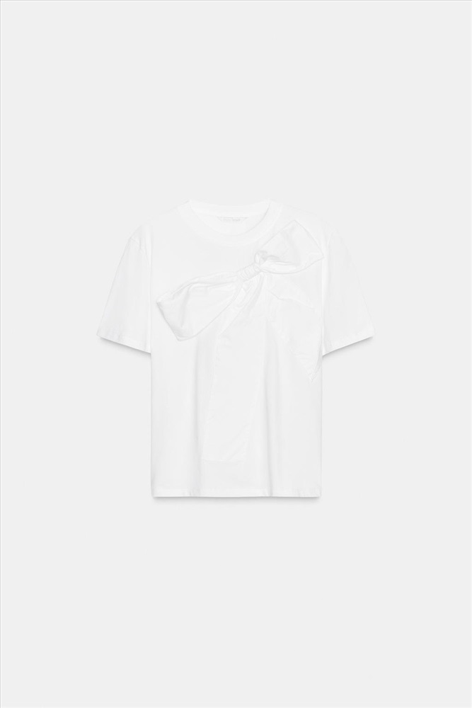 Spun cotton T-shirt. Featuring a round neckline and short sleeves. Tone-on-tone bow detail.