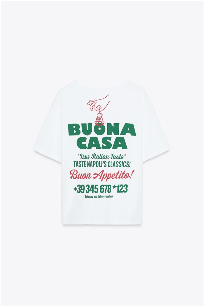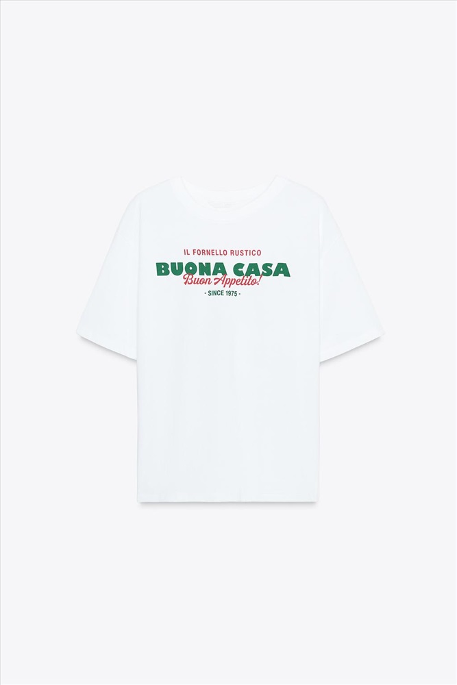 T-shirt with a round neck and short sleeves. Featuring a print and contrast text detail.
