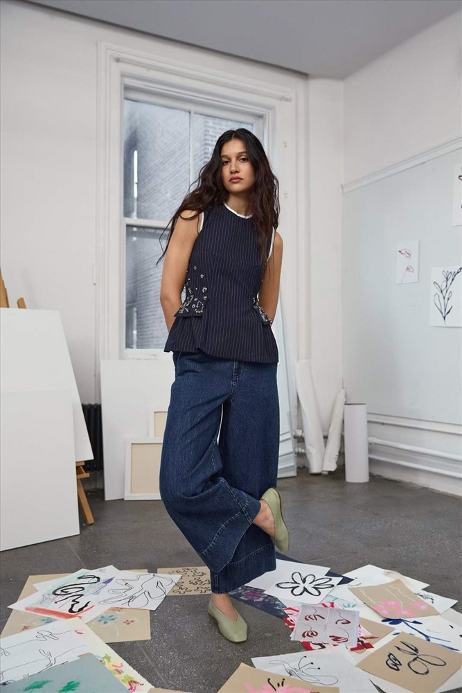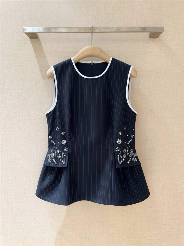 Тани Тейлор о новом продукте…… жилет в тонкую полоску, классический дизайн с круглым вырезом и изысканными цветами на вырезе Много ручной вышивки бисером, мастерство сложное и высококлассное!Силуэт скроен на заказ, не подчеркивая фигуру, однобортный, а общий стиль является одновременно официальным и модным, добавляя романтичности и изысканности. Будь то брюки, юбки или джинсы, это очень стильно.