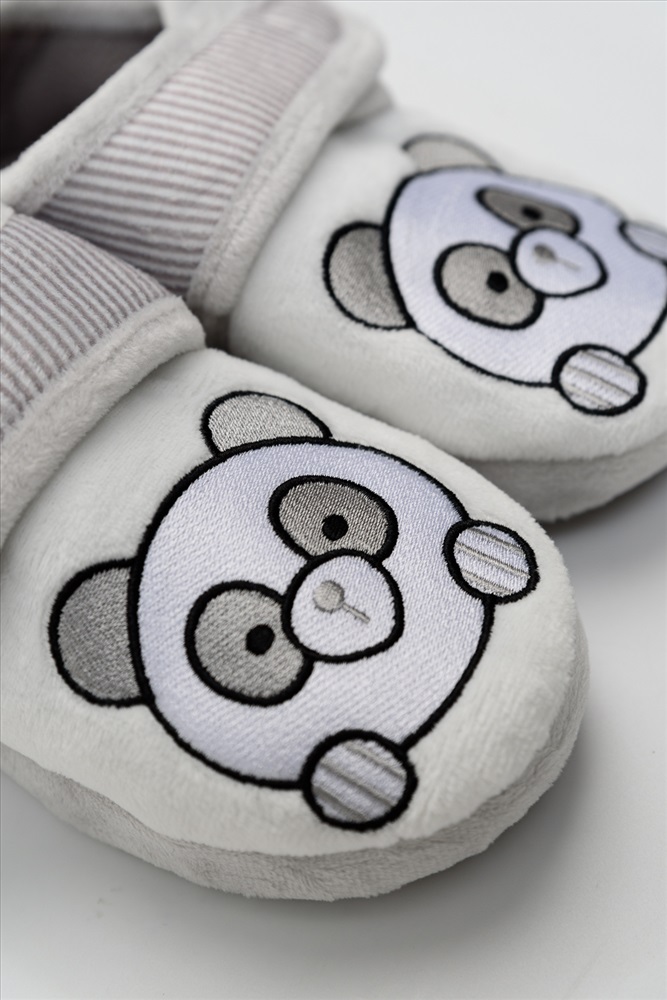 Состав: 100% полиэфирное волокно верх и подкладка Модель: Тапки детские 28020 Тип товара: тапки Бренд: KimiLimi Назначение: для дома Особенности: закрытая пятка | закрытый носок Рейтинг: Рейтинг 4 и выше Рисунок: зверюшки Сезонность: лето | осень | весна | зима Скидка: любая | от 10% и больше Стиль: домашний Детские тапочки для детей. На верхней части тапочка изображение панды. Таблица размеров и веса