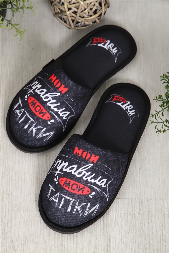Состав: 100% полиэстер Модель: Тапки Мои правила Тип товара: тапки Материал: сетка | сетка Бренд: Emotion day Назначение: для дома Особенности: открытая пятка | закрытый носок Рисунок: надпись Сезонность: лето | осень | весна | зима Стиль: домашний Мягкие домашние тапочки с закрытым носом и открытой пяткой это идеальный аксессуар для создания уютной атмосферы в вашем доме! Верх и стелька изготовлены из теплых и приятных на ощупь материалов. Подошва изготовленная из высококачественного ПВХ, который еще называют EVA. Обеспечивает отличное сцепление с полом и защиту от скольжения. Это уникальный материал и при всей своей комфортабельности, долго способен выдерживать большие нагрузки Удобные и стильные, эти тапочки с рисунком станут незаменимым аксессуаром вашего домашнего гардероба как зимой, так и в летние дни! Все наши тапки прошиваются для большей износостойкости армированной нитью, а сублимационная печать позволяет наносить краску на волокна ткани, из-за чего цвета получаются насыщенными и сохраняют яркость даже после нескольких стирок. Дизайнерские принты придадут уникальности и поднимут настроение вам и вашим гостям! Кликните на название бренда в карточке товара, чтобы просмотреть весь ассортимент Emotion Day Таблица размеров и веса