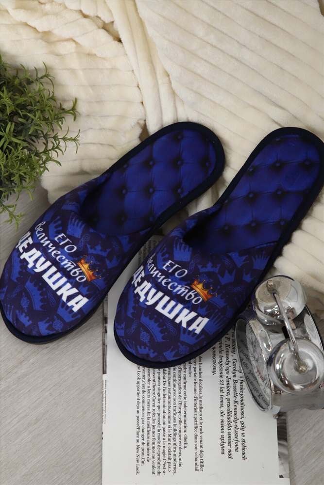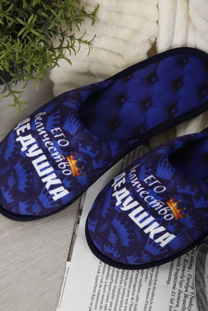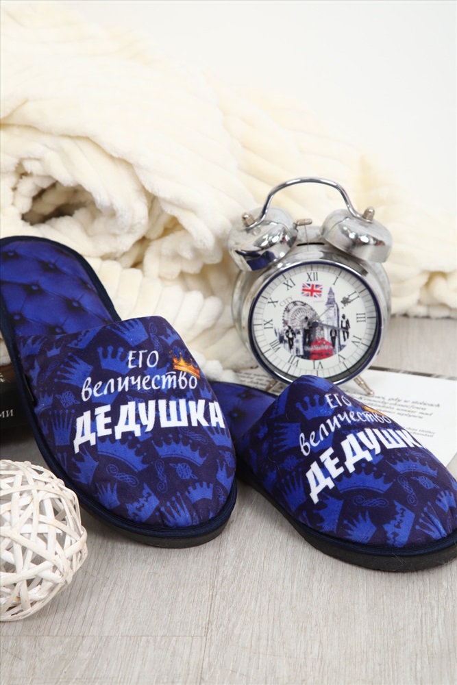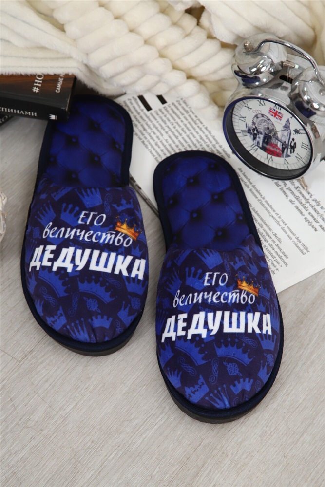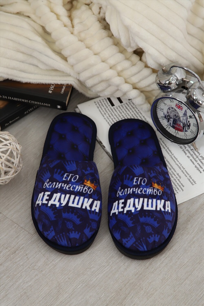 Состав: 100% полиэстер Модель: Тапки Величество дедушка Тип товара: тапки Материал: велюр | велюр Бренд: Emotion day Назначение: для дома Особенности: открытая пятка | закрытый носок Рисунок: надпись | разное Сезонность: лето | осень | весна | зима Стиль: домашний Мягкие домашние тапочки с закрытым носом и открытой пяткой это идеальный аксессуар для создания уютной атмосферы в вашем доме! Верх и стелька изготовлены из теплых и приятных на ощупь материалов. Подошва изготовленная из высококачественного ПВХ, который еще называют EVA. Обеспечивает отличное сцепление с полом и защиту от скольжения. Это уникальный материал и при всей своей комфортабельности, долго способен выдерживать большие нагрузки Удобные и стильные, эти тапочки с рисунком станут незаменимым аксессуаром вашего домашнего гардероба как зимой, так и в летние дни! Все наши тапки прошиваются для большей износостойкости армированной нитью, а сублимационная печать позволяет наносить краску на волокна ткани, из-за чего цвета получаются насыщенными и сохраняют яркость даже после нескольких стирок. Дизайнерские принты придадут уникальности и поднимут настроение вам и вашим гостям! Кликните на название бренда в карточке товара, чтобы просмотреть весь ассортимент Emotion Day Таблица размеров и веса