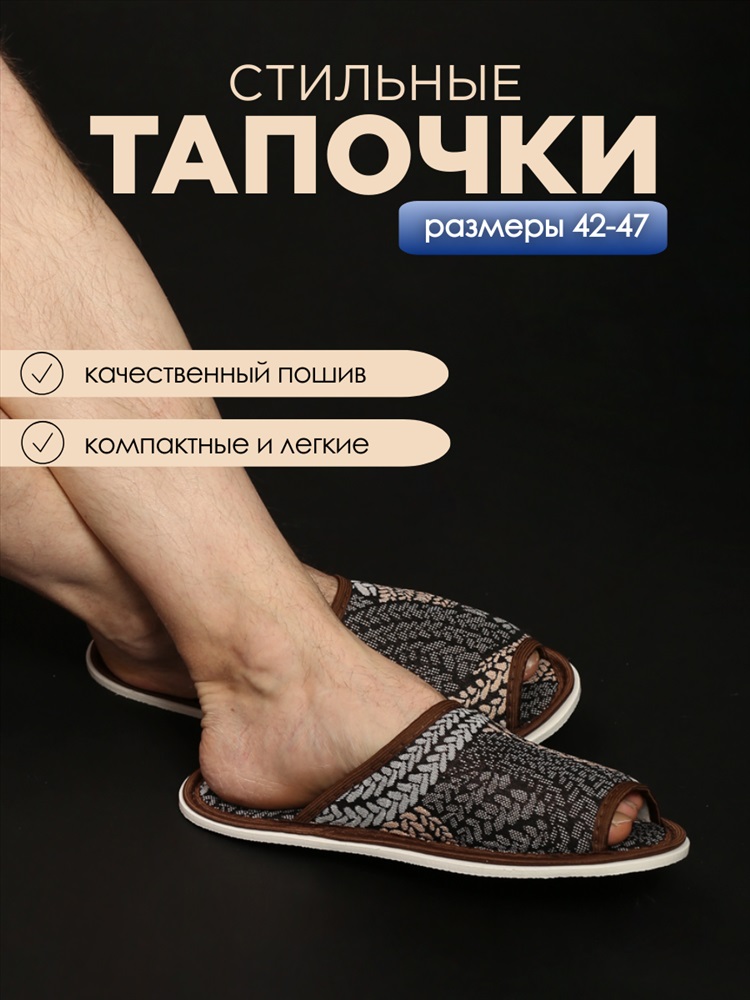 Стиль: домашний Отличные легкие тапочки для тех, кто предпочитает классику. Станут прекрасным дополнением для халатов, пижам и любой другой домашней одежды. Российский размер 42-43 соответствует длине стопы 26,5-27,5 см, 44-45 длина стопы 28-29 см.