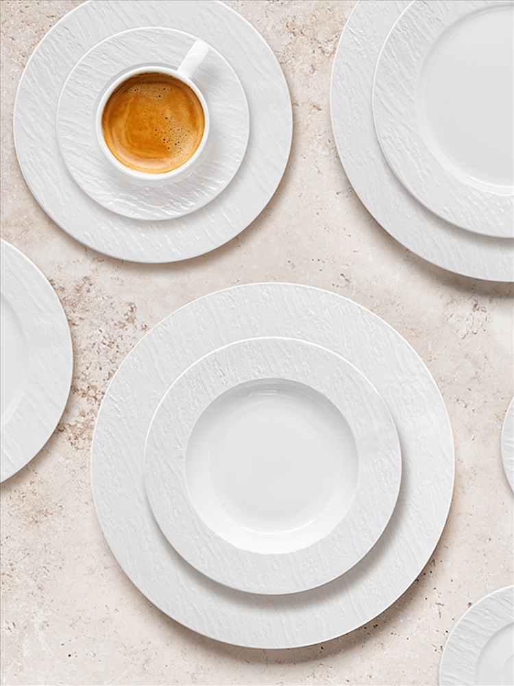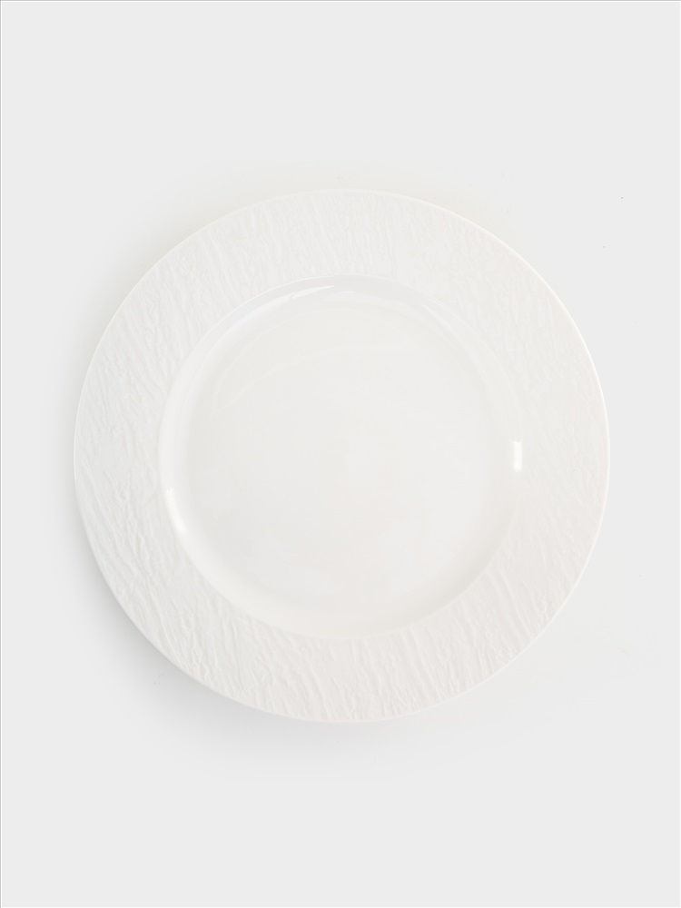 Тарелка обеденная, 27 см, фарфор P, белая, Мятый эффект, Rock. Материал: фарфор Рorcelain. Мыть тёплой водой с применением жидких моющих средств и в посудомоечной машине. Можно использовать в СВЧ.