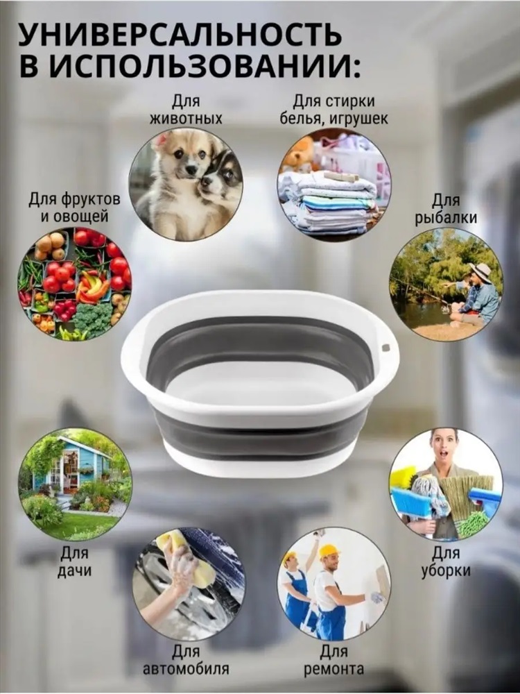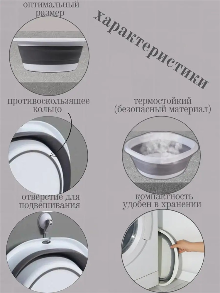 Модель: Таз складной 83410 Тип товара: таз Бренд: Натали Суслова Назначение: для дачи Удобный складной таз разных размеров, 5л и 10 л. Незаменимая и нужная вещь в каждом доме. Сделаны из высококачественных материалов. Пищевой силикон абсолютно безопасен для продуктов питания, можно складывать ягоды, фрукты, овощи. В сборном виде удобно использовать как поднос. Пластиковый таз удобно хранить, не занимает много места, сложить, повесить, положить. Таблица размеров и веса