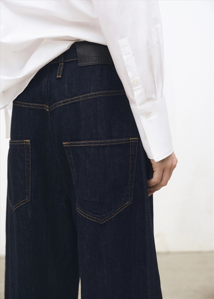Tejido de algodón estilo tejano vaquero. Rinse wash. Diseño wideleg. Diseño loose. Diseño largo. Tiro alto. Trabillas. Cinco bolsillos. Cierre delantero de cremallera y botón. Colección Selection.