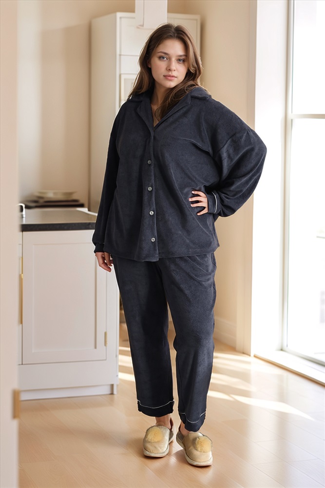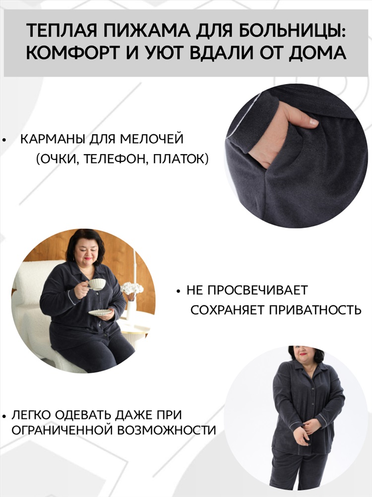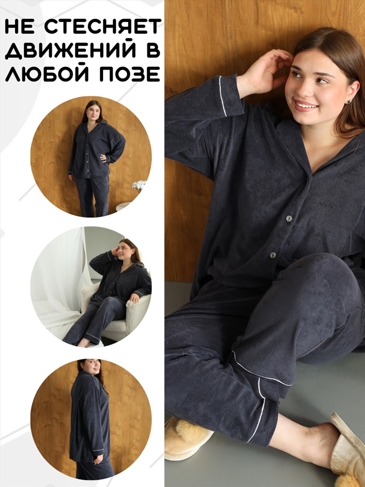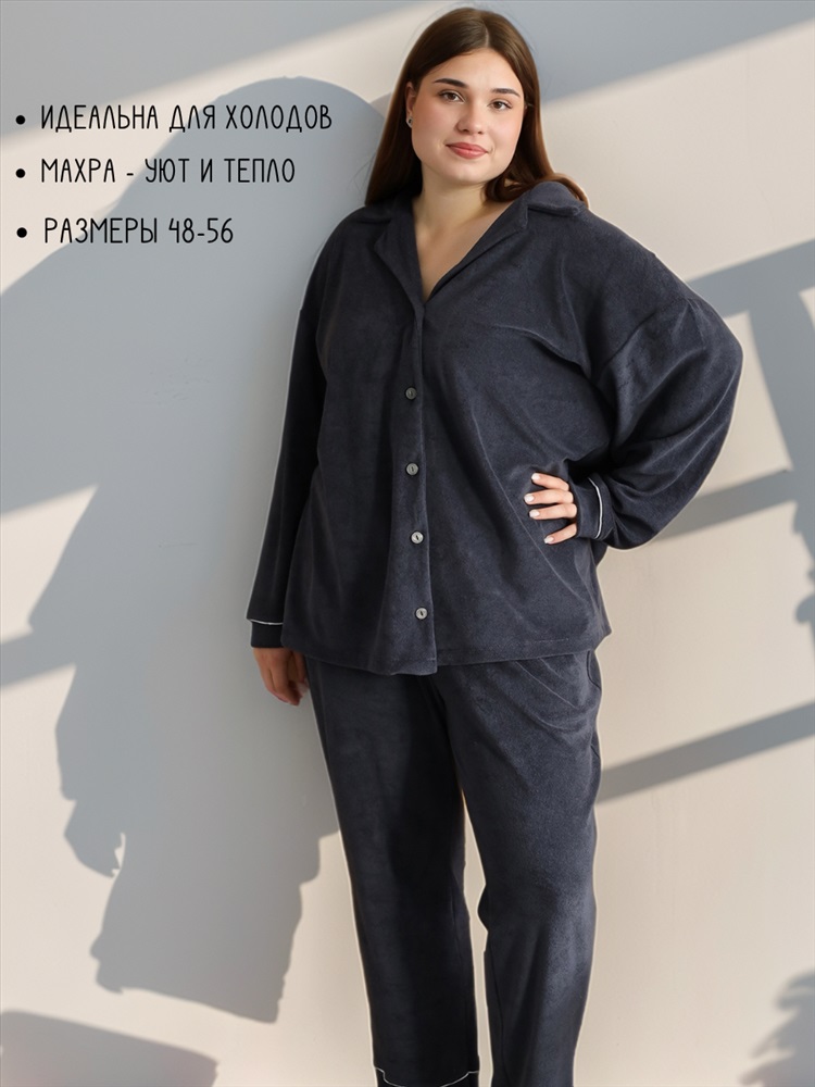 Состав: 70% хлопок; 30% пэ Модель: Теплая махровая пижама с брюками однотонная 48-56 Тип товара: пижама с брюками Материал: махра | махра Бренд: ВРазмере Карман: боковые | прорезные Назначение: для дома НДС: 5% Особенности: на резинке Отделка: с карманами | с манжетами Посадка: высокая посадка Рисунок: однотонные Рукав: длинный рукав Сезонность: осень | зима Силуэт: свободный Стиль: домашний Воротник: отложной воротник | воротник с лацканами Застежка: пуговицы Представляем вам невероятно уютную и теплую пижаму, созданную для комфортного отдыха дома. Эта пижама женская со штанами станет вашим любимым нарядом в прохладные вечера. Мягкая махровая ткань из хлопка с добавлением полиэстера подарит вам приятные тактильные ощущения, а свободный крой позволит чувствовать себя комфортно даже в течение всего дня. Теплая пижама больших размеров идеально подойдет для женщин, которые ценят уют и комфорт. Таблица размеров и веса