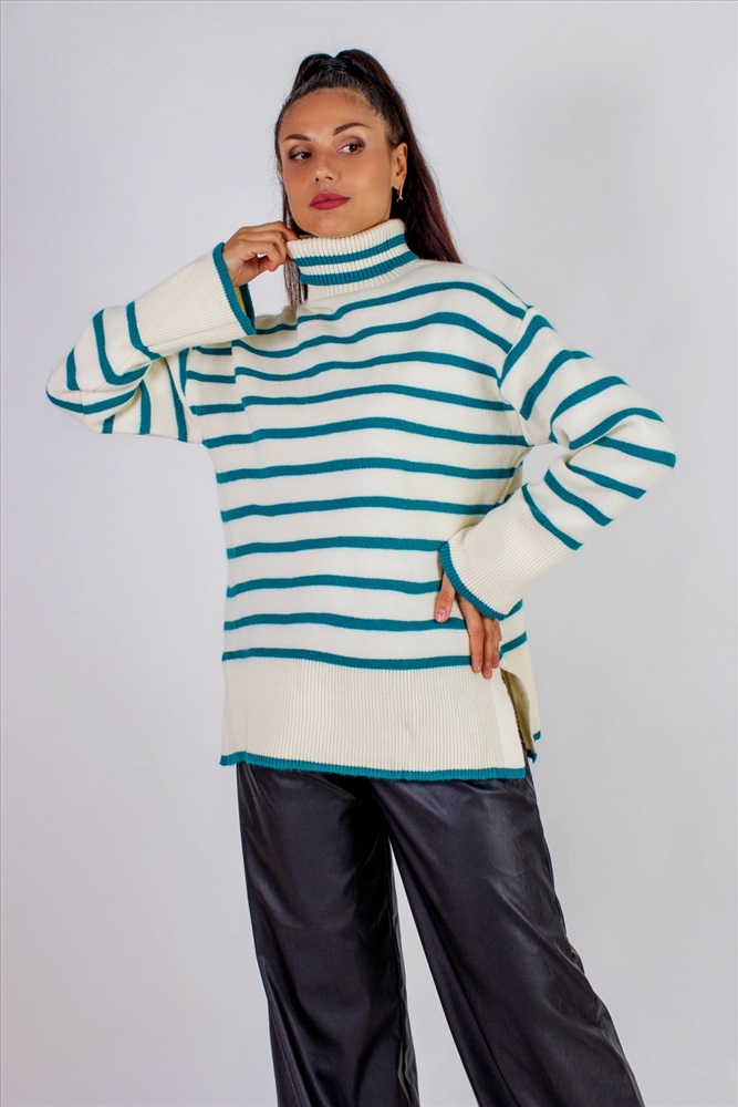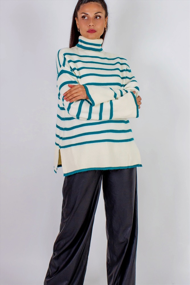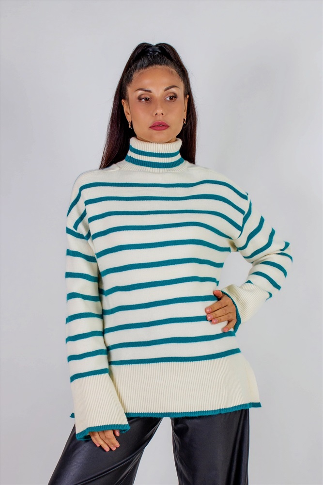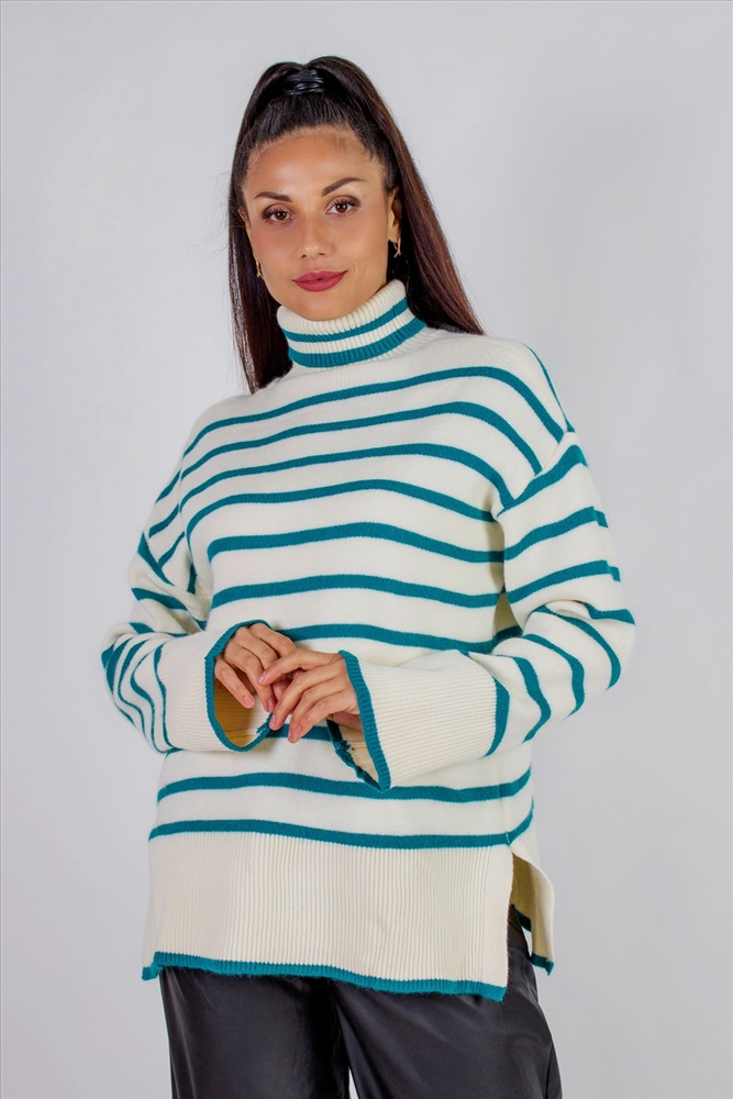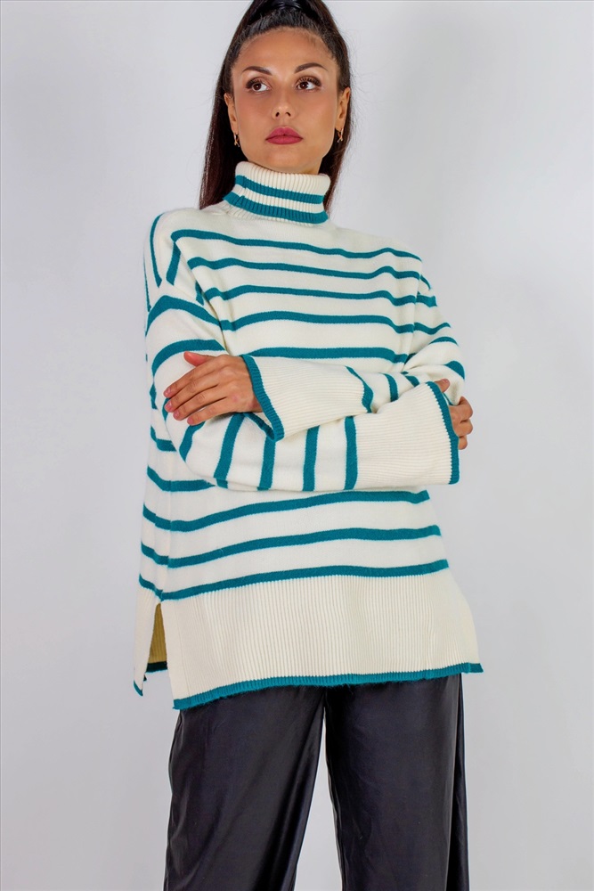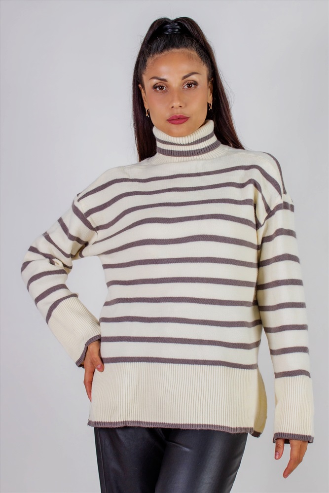 Модель: Теплая туника в полоску высокий ворот арт. 2918