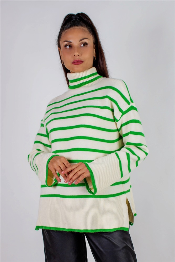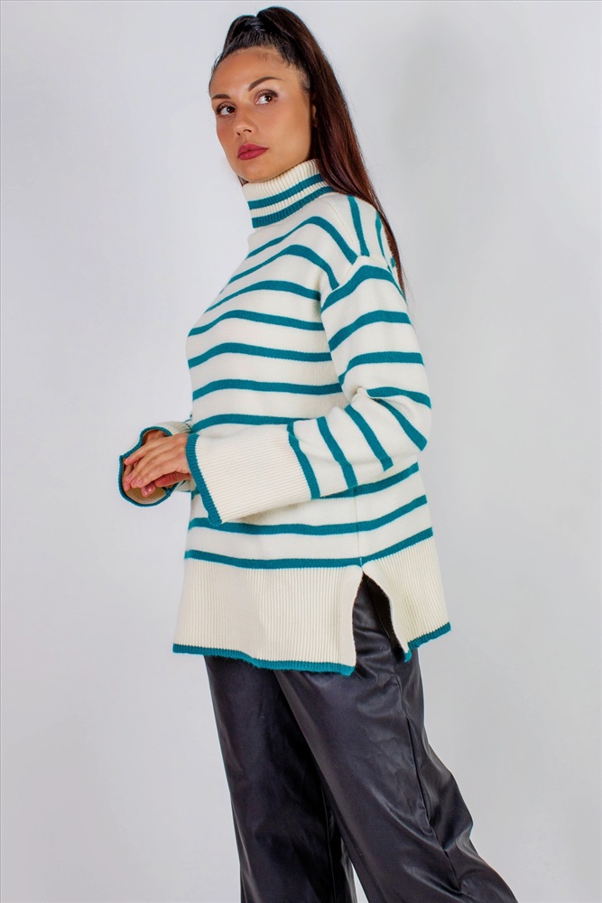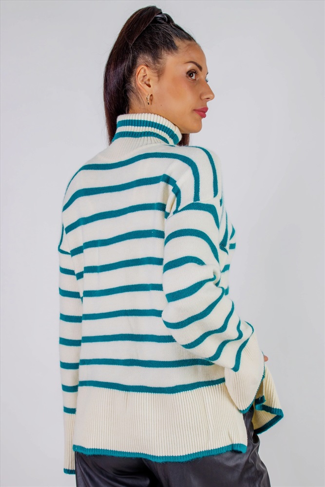 Стильный и уютный джемпер в полоску станет идеальным дополнением вашего гардероба. Изготовлен из качественной акриловой плотной пряжи, джемпер отличается не только своим актуальным дизайном, но и приятными тактильными ощущениями. Он мягкий на ощупь и абсолютно не колется, что сделает его идеальным вариантом для повседневной носки, а также для создания стильных образов в прохладную погоду.
