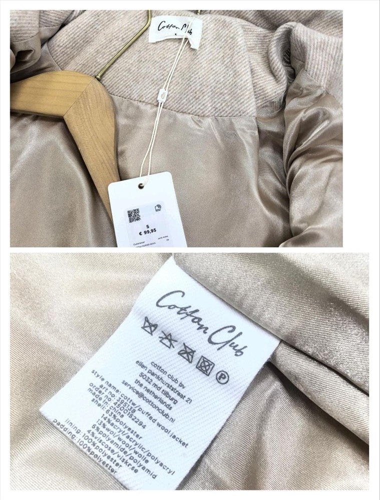 Ткань: 63% полиэстер, 14% акрил, 13% шерсть, 6% нейлон, 4% спандекс