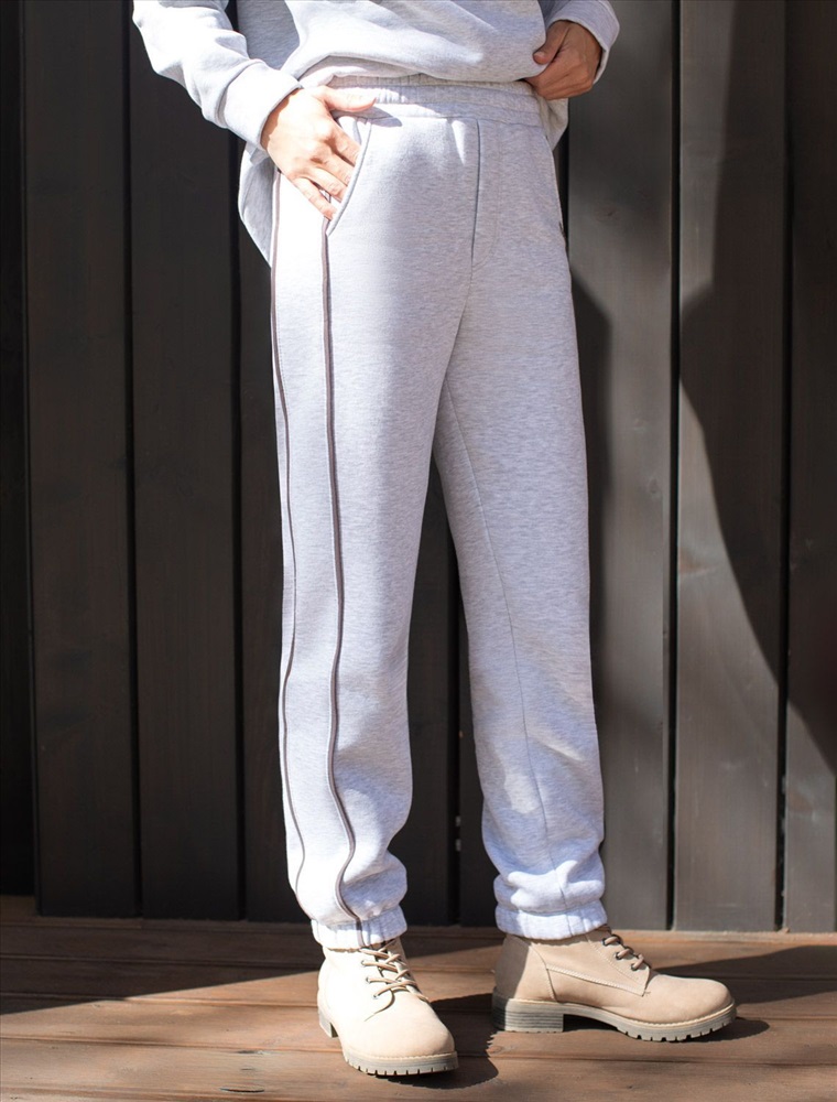 Плотность: 320 Г/м2 Теплые брюки джоггеры серого цвета с эффектом меланж из эластичного футера трехнитки с начесом созданы для максимального комфорта в холодную погоду. Мягкий материал приятный к телу, хорошо держит форму, не вытягивается и не теряет форму даже при активной носке. Благодаря дышащим свойствам премиального футера, брюки подходят на любую погоду, обеспечивая оптимальный микроклимат и уют. Свободный крой и эластичный широкий пояс делает посадку удобной для разных типов фигуры и размеров, включая большие и маленькие. Контрастные тонкие лампасы добавляют актуальности образу. Благодаря особенностям трехниточного плетения и внутреннему слою с начесом, эти брюки отлично сохраняют тепло в холодные осенние и зимние дни, при этом в них вы будете выглядеть модно и современно. Сочетайте в комплекте с худи D49.142 и бомбером D49.143 Комментарии к товару