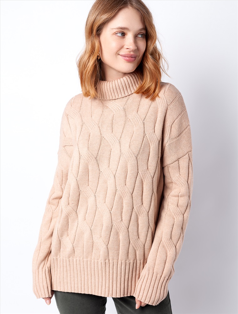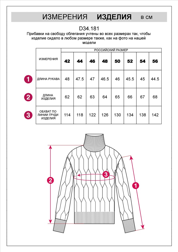 Параметры модели на первом фото: Рост 170, бюст 89, талия 63, бедра 92 Уютный свитер с крупной вязки с узорами косы выполнен из мягкой хлопковой пряжи с акрилом. Модель абсолютно не колется и очень комфортная в носке даже на голое тело. Отлично согревает при этом не перегревая. Хорошо сочетается с брюками из эко-кожи и джинсами на флике, вельветом. Комментарии к товару