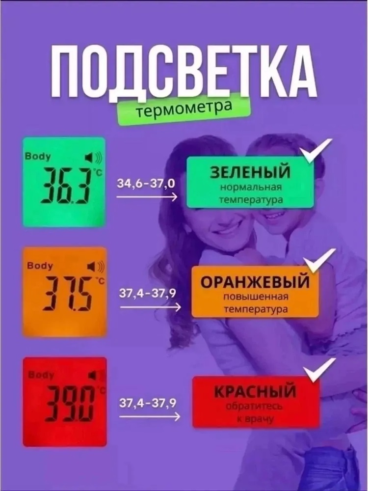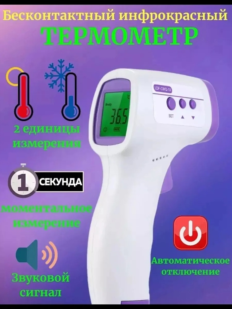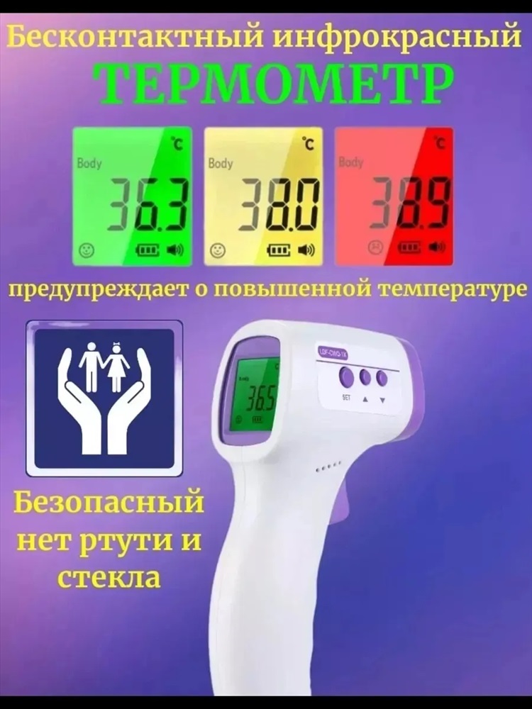 Скидка: любая | от 10% и больше Бесконтактный медицинский термометр - это цифровое устройство для измерения температуры тела у взрослых и детей. Он обладает инфракрасным излучением, которое помогает понять вашу температуру тела. Главные преимущества электронного термометра: - измерение температуры всего за 1-ну секунду; - безртутный и не стеклянный, поэтому он долговечный и безопасный для окружающих; - его не нужно протирать после каждого использования; - дисплей; - цвет экрана меняется в зависимости от высоты температуры (зеленый - все в порядке; желтый - слегка повышена, красный - сильно высокая); - с сертификатом; - удобно узнать температуру, пока малыш спит или играет. Устройство оснащено встроенной памятью, в которой сохраняются результаты последних 32-х замеров, ртутный такого точно не сделает. После использования он отключится сам через 15-ть секунд. Бесконтактный детский градусник для тела облегчит процесс и быстро выдаст результат.