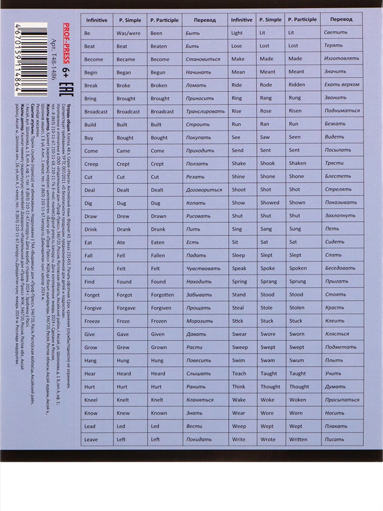 Модель: Тетрадь КЛЕТКА 48л. АНГЛИЙСКИЙ ЯЗЫК «МАНГА» (Т48-1486) стандарт, твин-лак Тип товара: тетрадь Бренд: Проф-прес Стиль: для школы На протяжении всего обучения в школе главным помощником для ученика является тетрадь! Новая серия Манга это серия из 16 предметных тетрадей, которая представляет собой микс трендов: дерзких аниме-героев и харизматичных животных. Тетради имеют необычное сочетание актуальных дизайнов, которое придает этой серии выразительный характер. Внутри расположен справочный материал с подсказками по соответствующему школьному предмету. Обложка: мелованный целлюлозный картон, твин-лак. Внутренний блок: офсет 60 г/м 100 % белизны, 48 листов. Линовка: клетка. Таблица размеров и веса