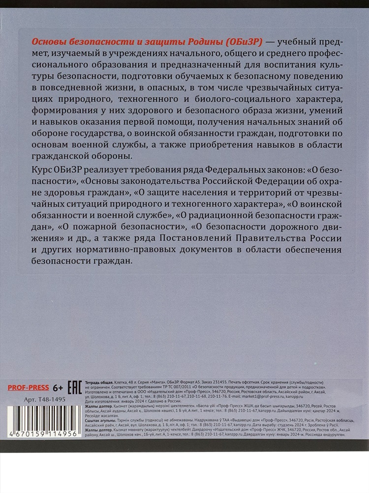 Модель: Тетрадь КЛЕТКА 48л. ОБиЗР «МАНГА» (Т48-1495) стандарт, твин-лак Тип товара: тетрадь Бренд: Проф-прес Стиль: для школы На протяжении всего обучения в школе главным помощником для ученика является тетрадь! Новая серия Манга это серия из 16 предметных тетрадей, которая представляет собой микс трендов: дерзких аниме-героев и харизматичных животных. Тетради имеют необычное сочетание актуальных дизайнов, которое придает этой серии выразительный характер. Внутри расположен справочный материал с подсказками по соответствующему школьному предмету. Обложка: мелованный целлюлозный картон, твин-лак. Внутренний блок: офсет 60 г/м 100 % белизны, 48 листов. Линовка: клетка. Таблица размеров и веса