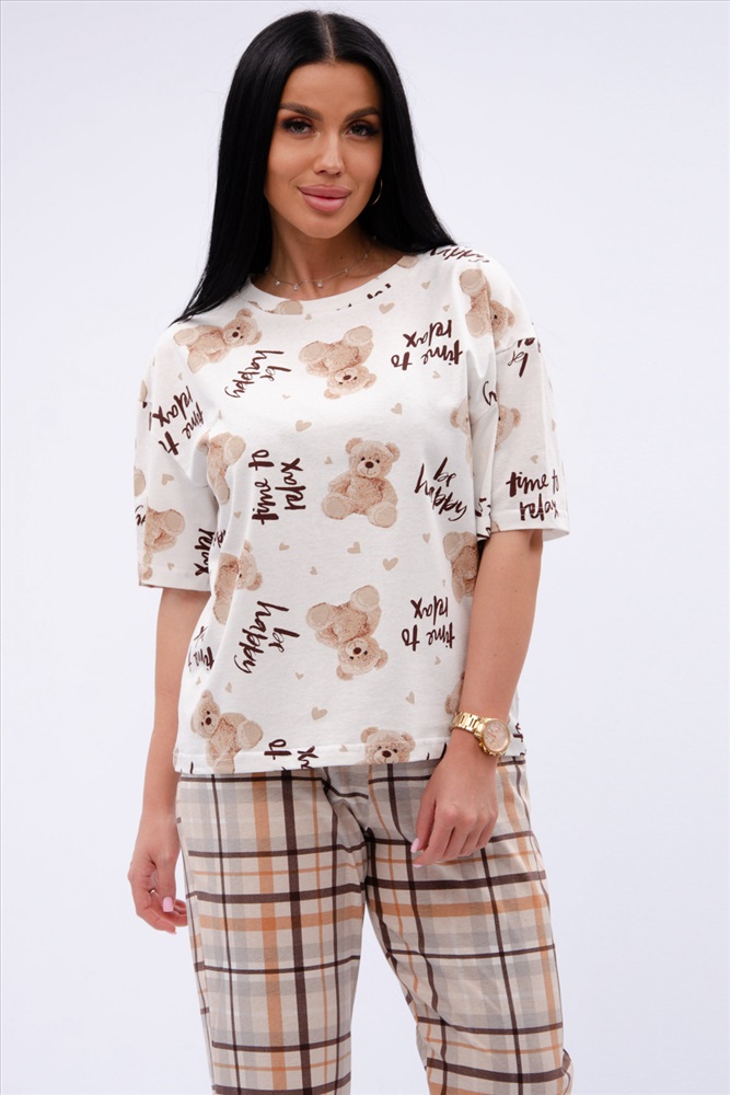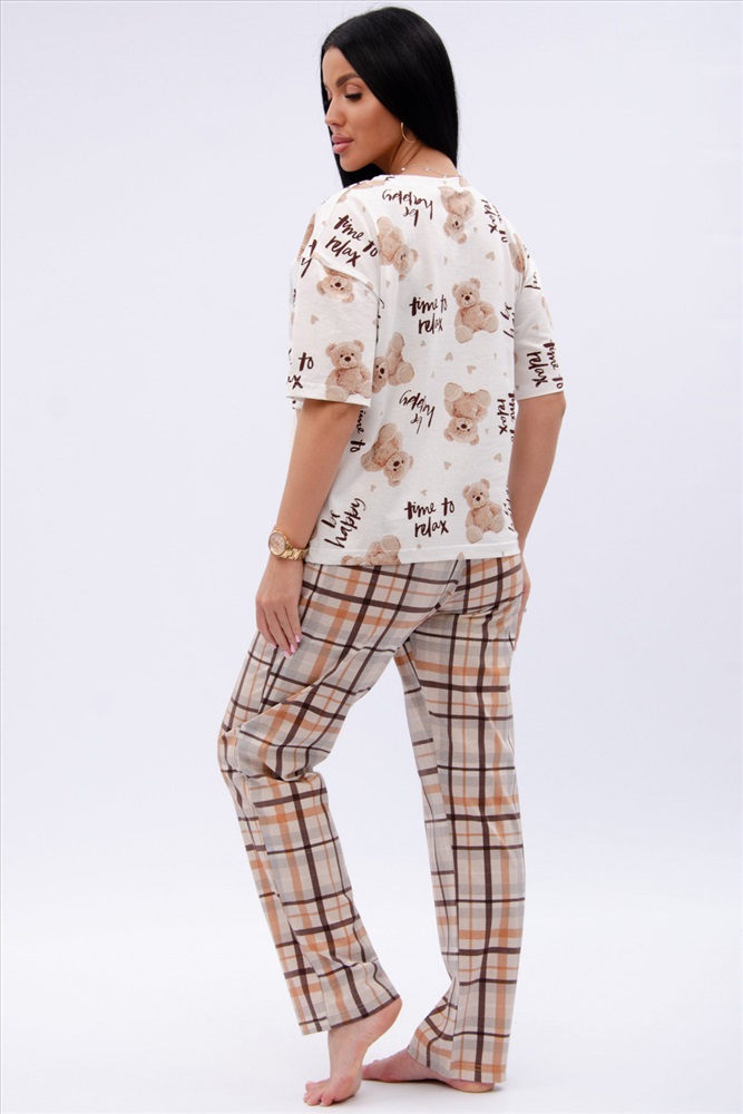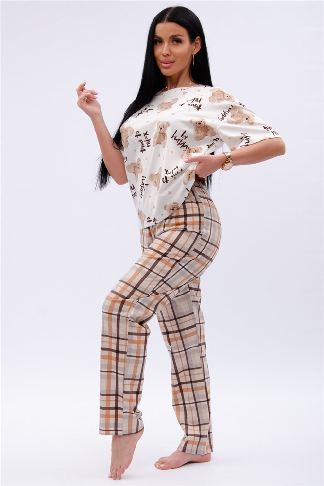 Стиль: домашний Пижама женская со штанами изготовлена из мягкой ткани (100 % хлопка), которая обладает дышащими и влаговпитывающими свойствами, идеально подходит для сна, обеспечивает максимальную практичность и воздухопроницаемость, облегчая сон даже в самые жаркие и холодные ночи. Женский домашний костюм состоит из стильной тонкой ночной футболки с коротким рукавом и легких брюк, которые создают комфортный домашний уют дома. Пижама женская яркая и в тоже время нежная, идеальна для беременных, будущих мам или в роддом, ведь в этой пижаме для беременных удобно весь день. Носить можно в любое время года: осенью или даже зимой под согревающим одеялом.