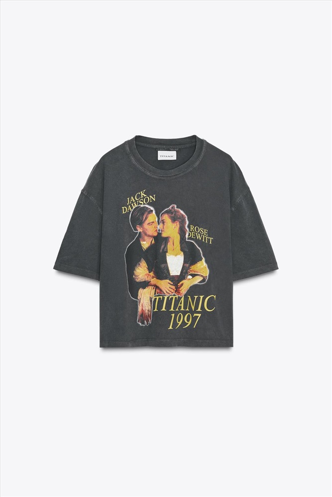 T-shirt made from 100% cotton yarn with a faded effect. Round neck and short sleeves. Featuring a print detail of the film Titanic ©20th Century Studios and Paramount Pictures.