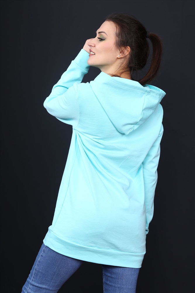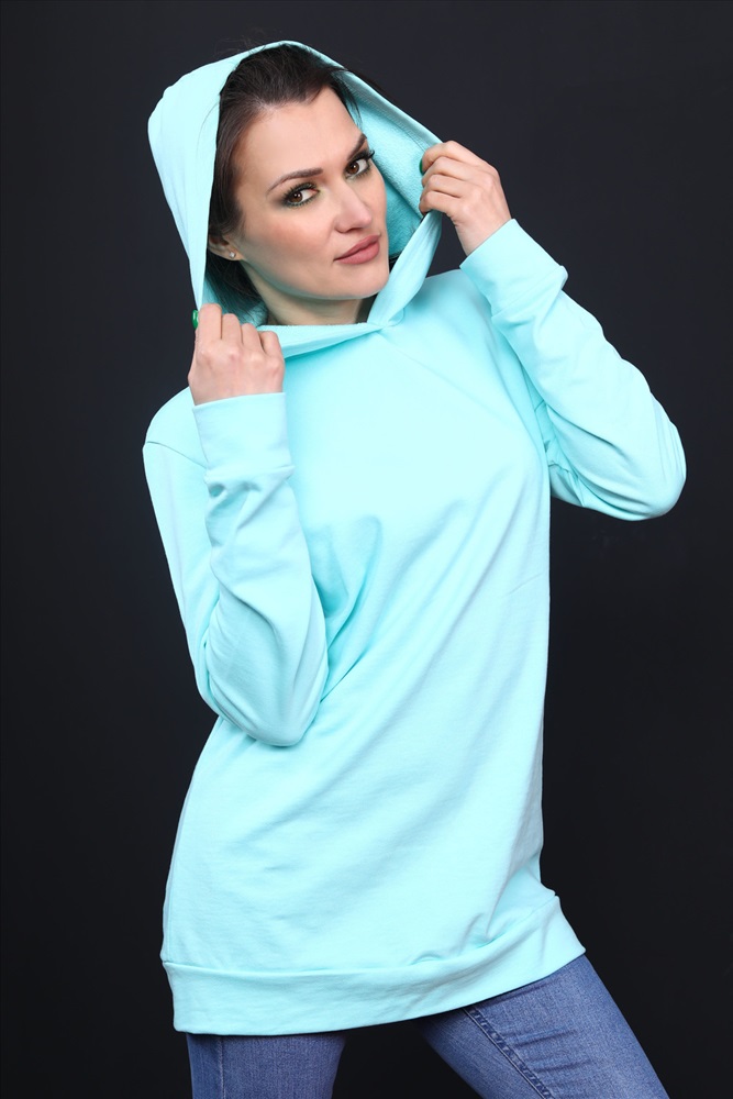 Застежка: без застежки Толстовка женская с капюшоном. Данная модель выполнена из трикотажного полотна футер 3-х нитка петля. На рукавах и по низ изделия присутствуют манжеты из основной ткани. Отличная модель для прогулок и повседневной носки.