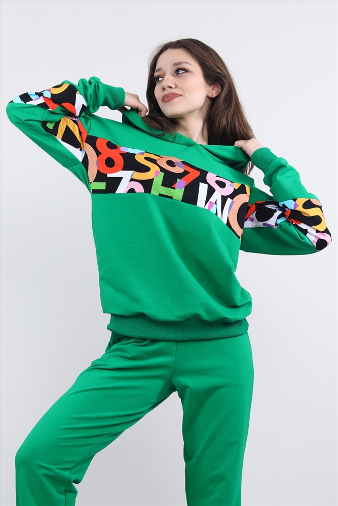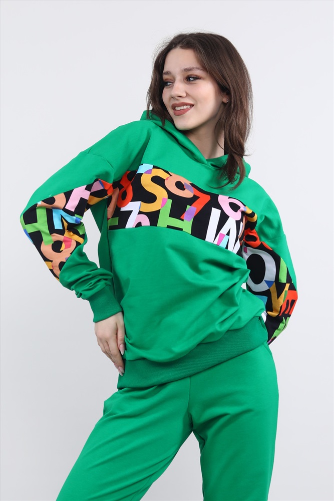 Застежка: без застежки Толстовка с длинным рукавом в стиле оверсайз. Данная модель выполнена из трикотажного полотна футер с лайкрой. Горловина, манжеты по рукавам и низ отделаны трикотажным эластичным полотном кашкорсе. На изделии присутствуют вставки из цифровой печати. Отлична модель для приятного отдыха и прогулок.