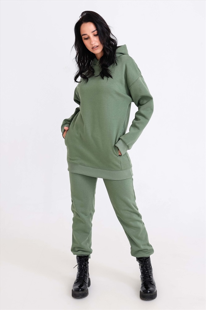 Состав: хлопок 45%, п/э 55% Модель: Толстовка 21562 Тип товара: худи Материал: интерсофт начес | интерсофт начес Бренд: Натали Суслова Карман: боковые Особенности: с начесом Отделка: с карманами | с манжетами Рукав: длинный рукав Сезонность: осень | весна | зима Силуэт: свободный Стиль: повседневный Воротник: с капюшоном Застежка: без застежки Худи, выполненное из очень качественной ткани - интерсофт с начёсом барашек. Плотность 320гр. В отличие от ткани футер 3-х нитка, начёс не осыпается и не пилингуется. Ткань плотная, упругая, мягкая, одна из толстых и тёплых видов трикотажа в своей группе. Начёс ткани обработан специально в виде барашка. Очень красивый и приятный к телу. Ткань двухсторонняя - интерлок пенье плюс флис. Худи идеально подходит для холодного время года. Имеет средний объём и прямой силуэт. Поэтому в измерениях указаны одинаковые значения обхватов груди, талии, бёдер. Спущенная линия плеч обеспечит комфорт и свободу движений. Капюшон свободный. На полочке имеется подрезной бочок, в котором располагаются внутренние глубокие карманы. Манжеты выполнены из качественного кашкорсе, которые не растягиваются после стирки. Рекомендуется ручная стирка. В комплект к толстовке можно приобрести брюки 21558; продаются отдельно Таблица размеров и веса