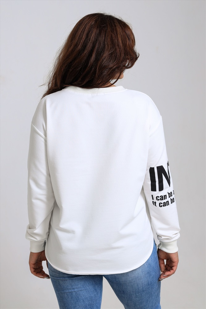 Застежка: без застежки Толстовка оверсайз - трендовая модель, которая прекрасно впишется в любой модный лук. Толстовка длинной до середины бедра по полочке и удлиненной спинкой, со спущенной линией плеча. Стильная черно-белая печать. Манжеты и горловина из кашкорсе в тон ткани. Низ изделия регулируется кулиской.