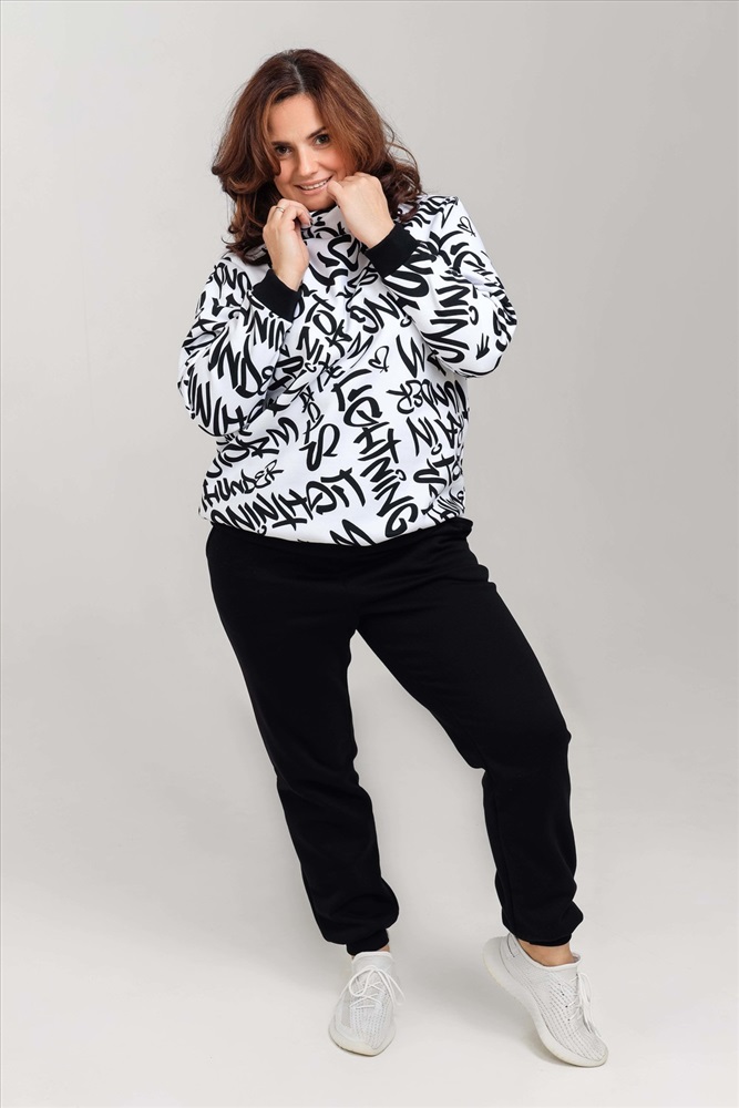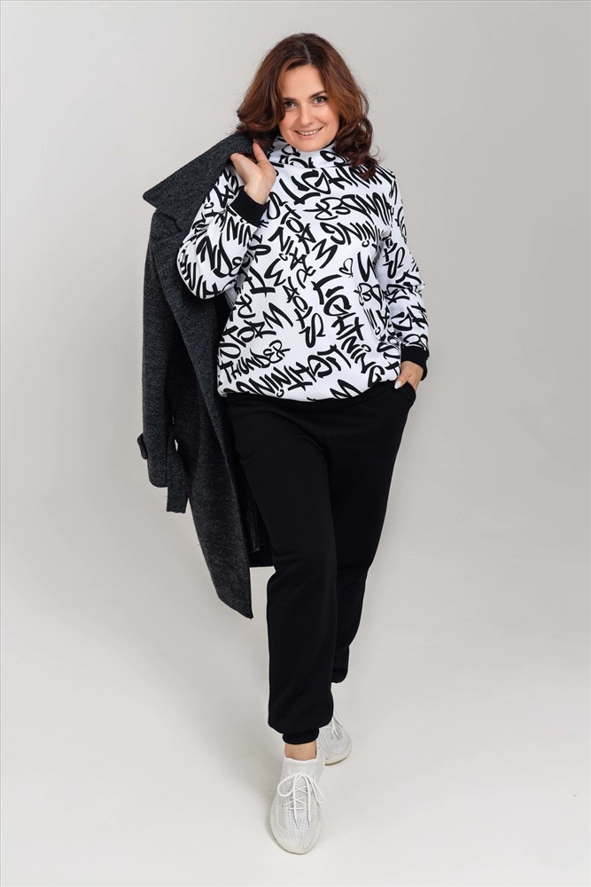Состав: 65% хлопок 35% п/э Модель: Толстовка 50525 Тип товара: толстовка Материал: футер 3-х нитка с начесом | футер 3-х нитка с начесом Бренд: Натали Суслова Особенности: с начесом Рисунок: надпись Рукав: длинный рукав Сезонность: осень | весна | зима Силуэт: свободный Стиль: повседневный Воротник: воротник стойка Толстовка женская из футера 3-х нитки с рисунком, пенье качества. Качество пенье - это высочайшее качество полотна. На ощупь полотно гладкое и шелковистое, не склонного к образованию катышков. Толстовка очень теплая, внутри нежный шелковистый начес, очень приятный к телу. Воротник стойка. Кашкорсе подобрано в тон к ткани. При желании комплектуется с брюками 50526. Таблица размеров и веса