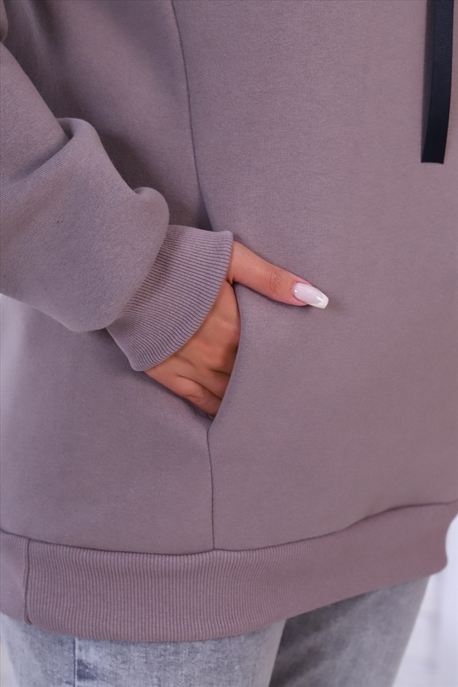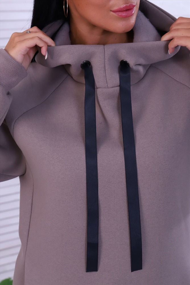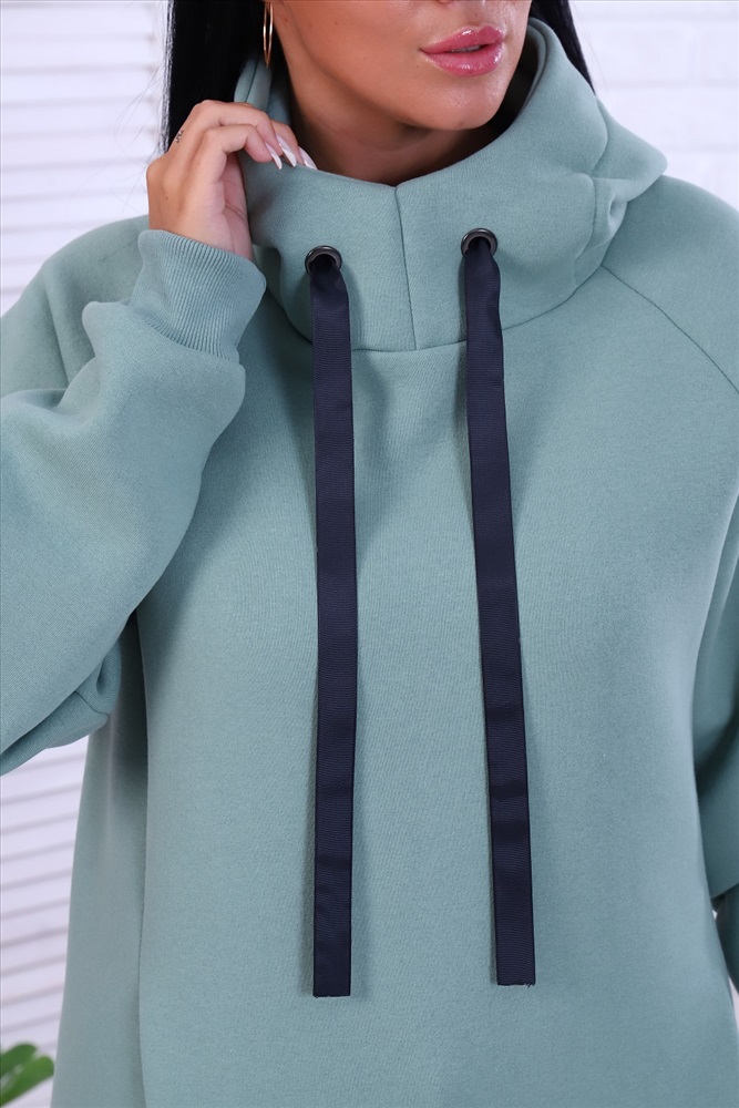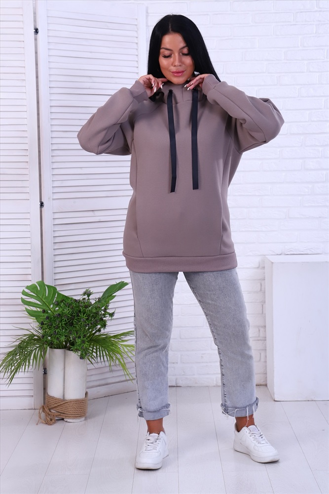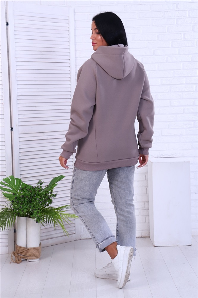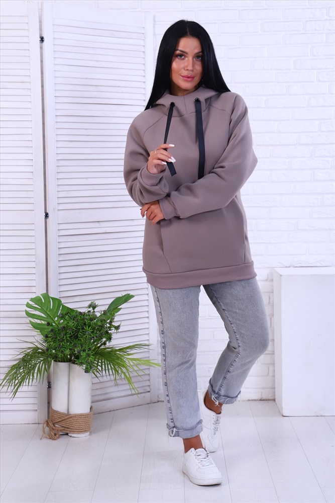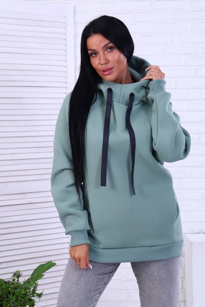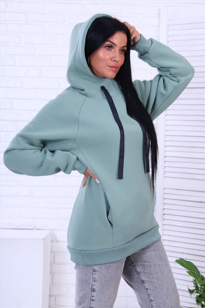 Застежка: без застежки Толстовка женская: рукав реглан с манжетами, капюшон с люверсами и с отделочной лентой, 2 внутренних кармана, низ изделия - пояс из кашкорсе