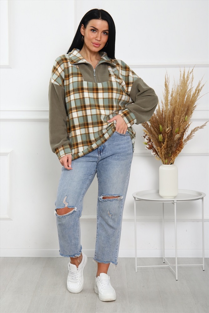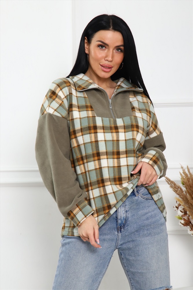 Застежка: молния Толстовка женская из тёплого флиса, воротник - стойка с молнией, рукава на резинке. Удобный крой, стильный рисунок, отличная посадка на любом типе фигуры.
