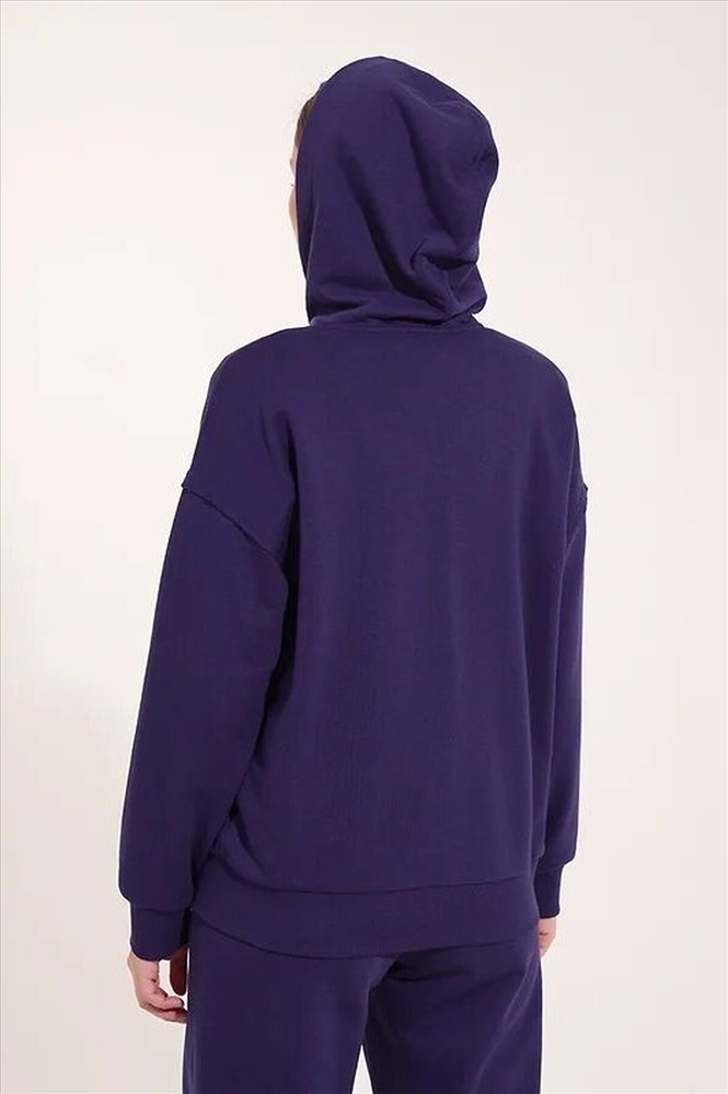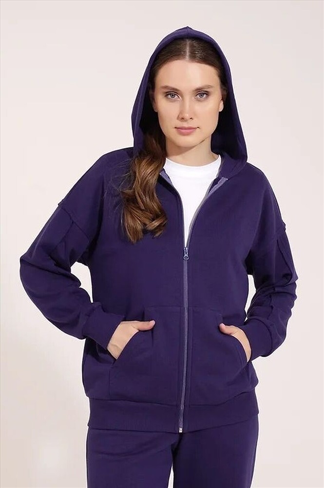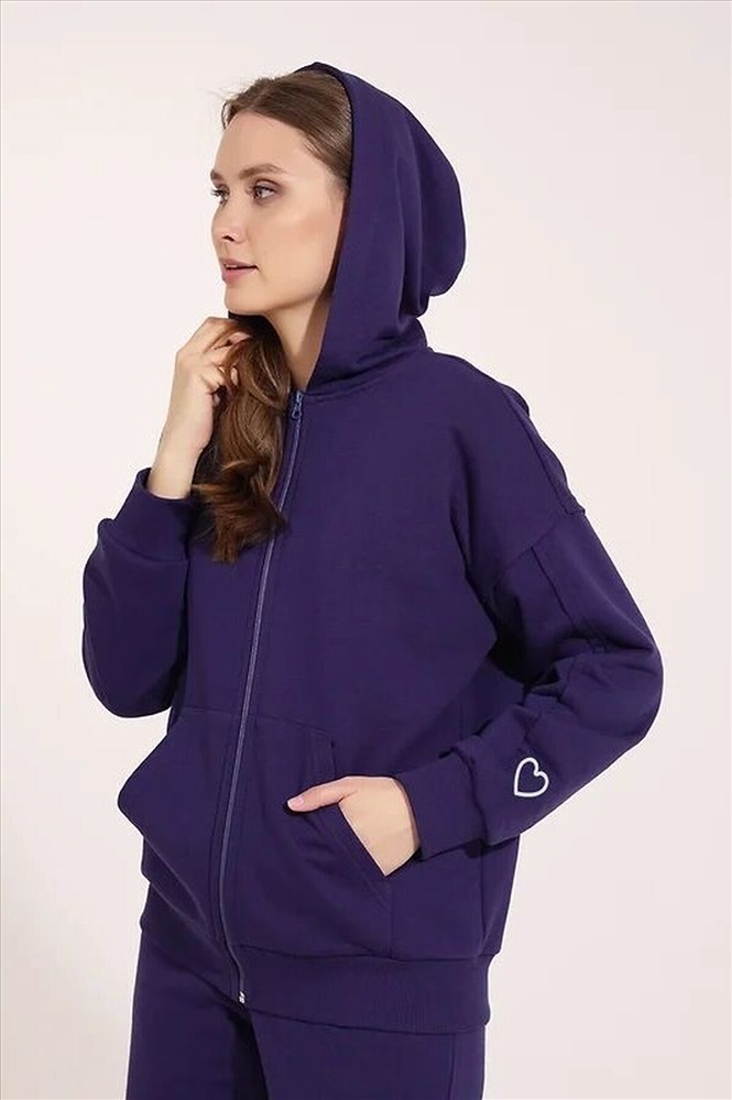 Куртка спортивная из трикотажного полотна футер,на молнии. По горловине капюшон на подкладе со шнуром. Длинный рукав со спущенной линией плеча, нашивка.По низу рукава и изделия манжеты. Спереди карман кенгуру, принт.По пройме и шву рукава открытый срез.