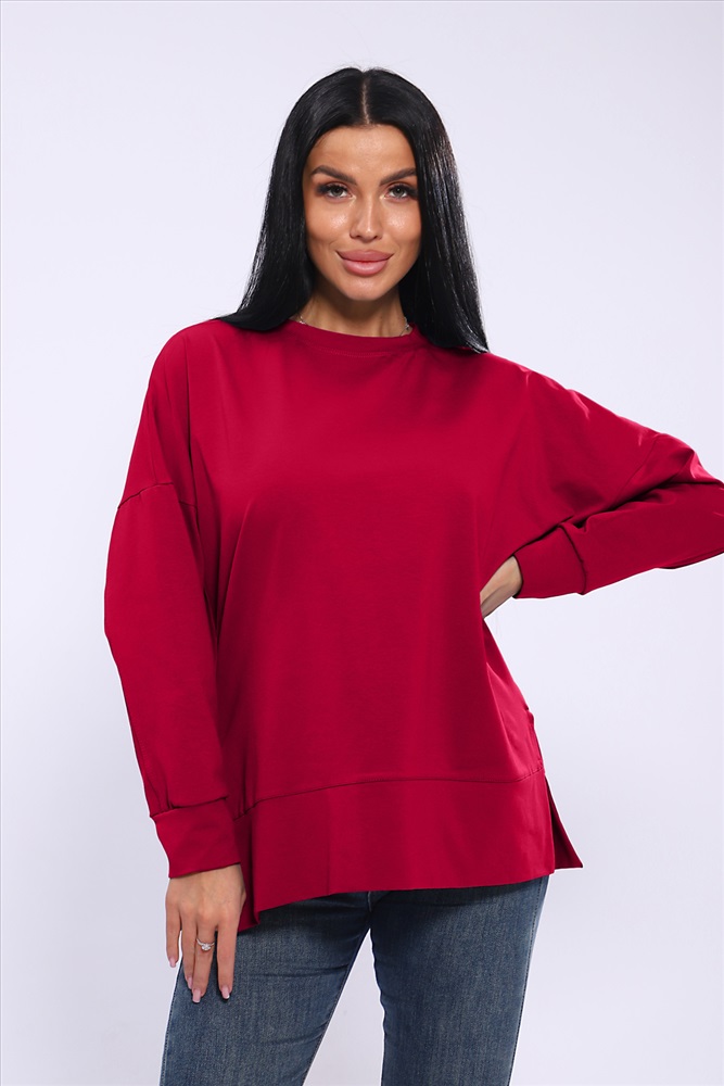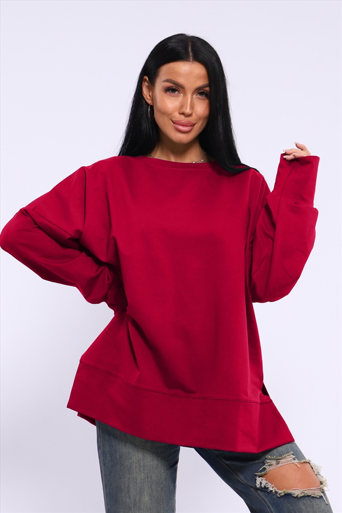 Застежка: без застежки Яркая худи свободного кроя без капюшона. Рукав спущенный, имеется карман-кенгуру и разрезы по бокам.
