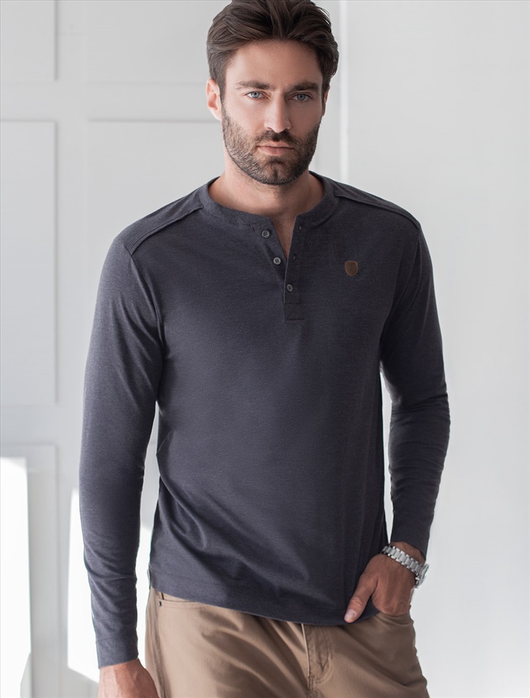 Плотность: 170 Г/м2 Параметры модели на первом фото: Рост 190, бюст 108, талия 87, бедра 104 Размер товара на первом фото: 54 Лонгслив темно-серого цвета с эффектом меланж с длинным рукавом выполнен из премиального хлопка с эластаном, Мягкий материал обеспечивает приятные тактильные ощущения,натуральный состав ткани позволяет коже дышат, удобен в повседневной длительной носке. Благодаря эластичному материалу лонгслив тянется и создает комфортный полуприлегающий силуэт. Подходит для маленьких и больших размеров, не сковывает движения и сохраняет форму после стирки. Облегающий лонг выгодно выделяет линии тела, при этом в нем ощущается свобода движений. Круглый ворот на металлических пуговицах создает стильный образ, который легко впишется в базовый гардероб. Тонкий джемпер дополнен нашивкой из эко кожи с логотипом бренда. Такой повседневный лонгслив подходит для создания многослойных образов в холодное время года, а в межсезонье и теплые дни можно носить как самостоятельный элемент гардероба, легко комбинируется с повседневной и офисной одеждой в стиле casual. Комментарии к товару
