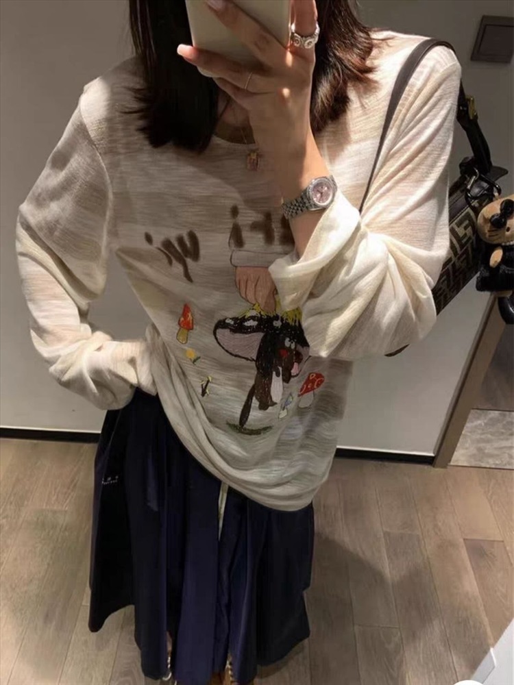 Тонкий женский лонгслив с очень смешным принтом