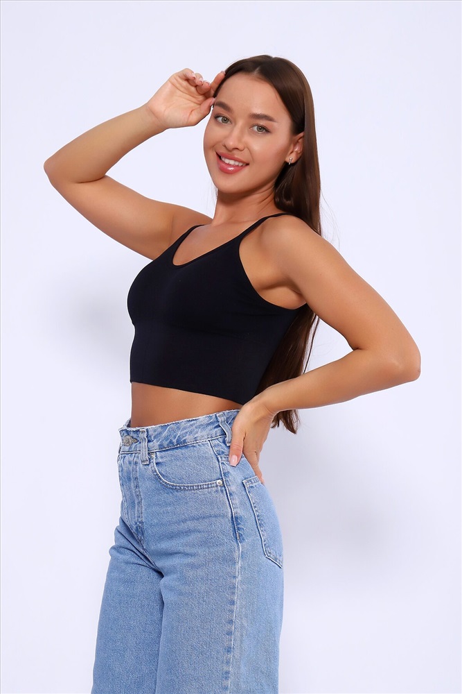 ID товара: 1023839 Состав: Нейлон 92%; Спандекс 8% Сезон: Весна/Лето Длина: Укороченная Фасон: Облегающий Рукав: без рукавов Вырез горловины: На бретельках Основная ткань: Нейлон Стиль: Базовый Вид ткани: Лапша Страна бренда: Россия Страна производства: Китай Укороченный топик на тонких лямках идеально подчеркивает объем груди благодаря встроенным съемным чашечкам без косточки, делая зону декольте более привлекательной. Этот универсальный кроп-топ подходит как для повседневной носки, так и для работы в офисе, особенно под пиджаком. Этот летний кроп-топ станет лучшим домашним бельем даже зимой, а короткий спортивный топ с открытой спиной и вырезом на груди идеально подойдет для занятий физкультурой или фитнесом. Он может служить как бюсте под прозрачной блузкой, так и самостоятельным элементом одежды. Производство Китай. Комментарии к товару