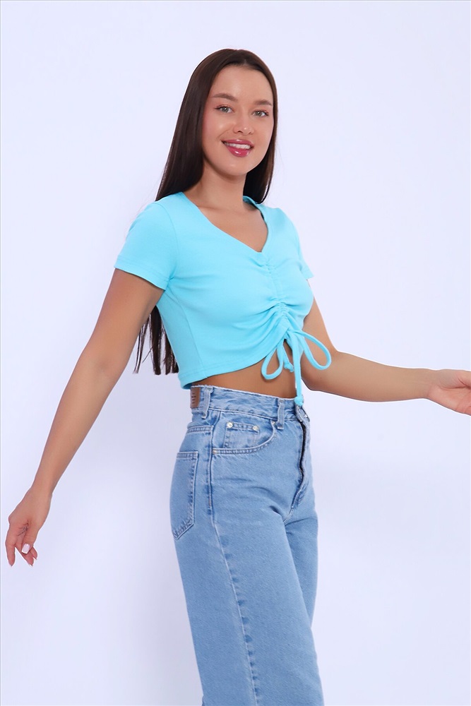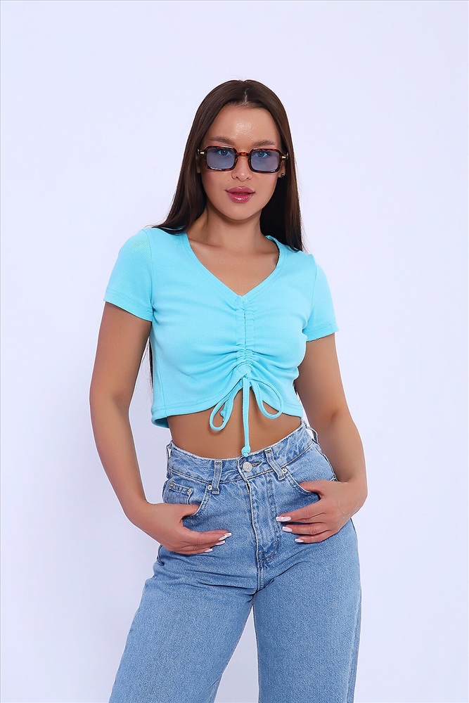 Кроп топ женский летний на завязках - это множество стильных образов на лето! Необычный дизайн топа со шнуровкой спереди разнообразит базовый гардероб. С помощью шнуровки можно легко регулировать длину топа спереди. Чтобы придать образу иривости, максимально затяните завязки на груди. Для повседневных образов можно полностью распустить шнуровку. Однотонный яркий открытый кроп топ легко сочетать с любым низом. В таблице замеров в столбце обхват бедер указан обхват низа изделия. Параметры модели 162 см, 88-59-89. На модели представлен 42 размер.