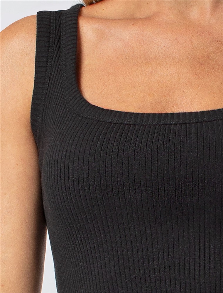 Топ выполнен из трикотажа в широкий рубчик. Эластичный хлопковый трикотаж идеально сидит по фигуре, не сковывает движений и очень комфортный в носке. Фактура вертикальных полос визуально стройнит и вытягивает силуэт. Базовое изделие хорошо впишется в любой гардероб. Идеально подходит для многослойных образов в базовый гардероб.