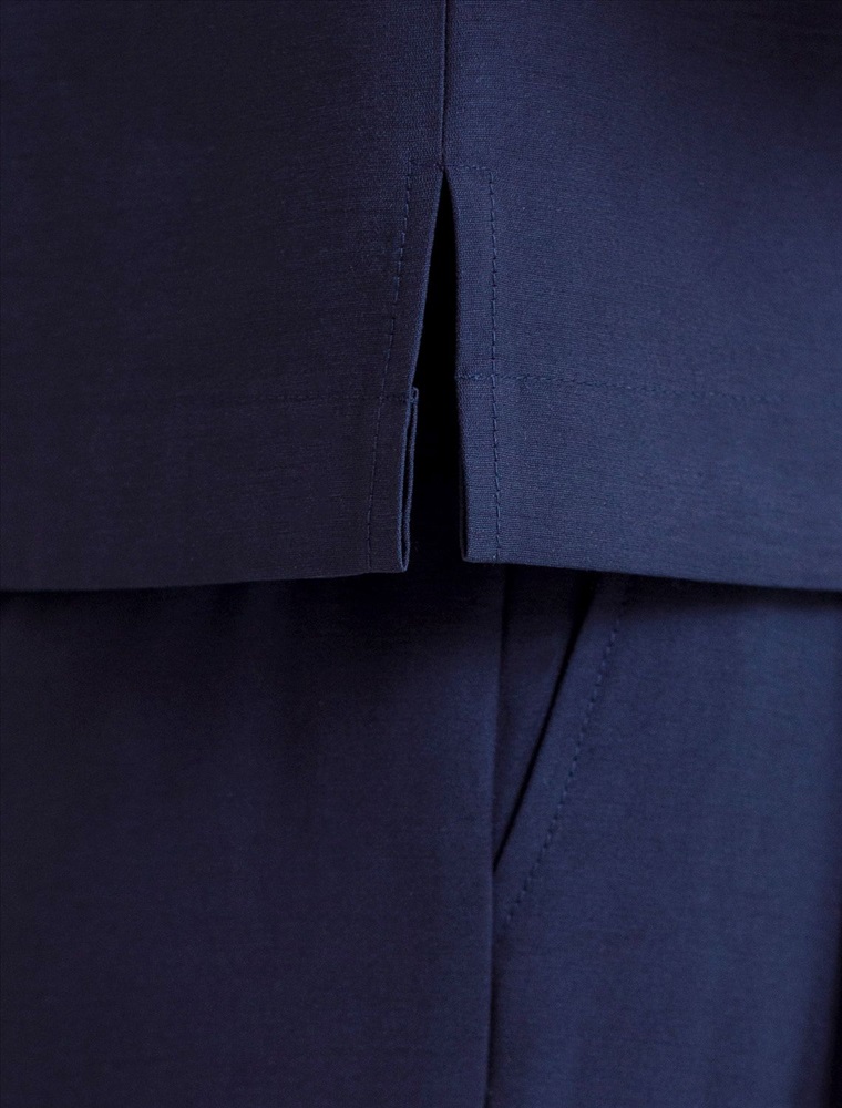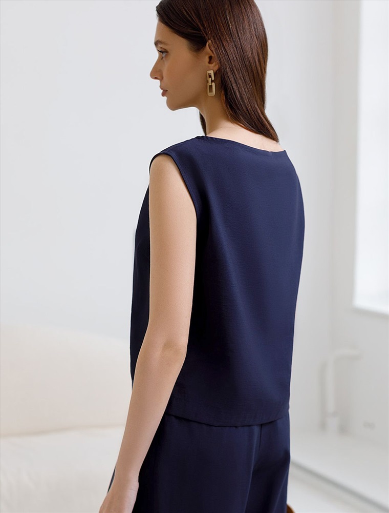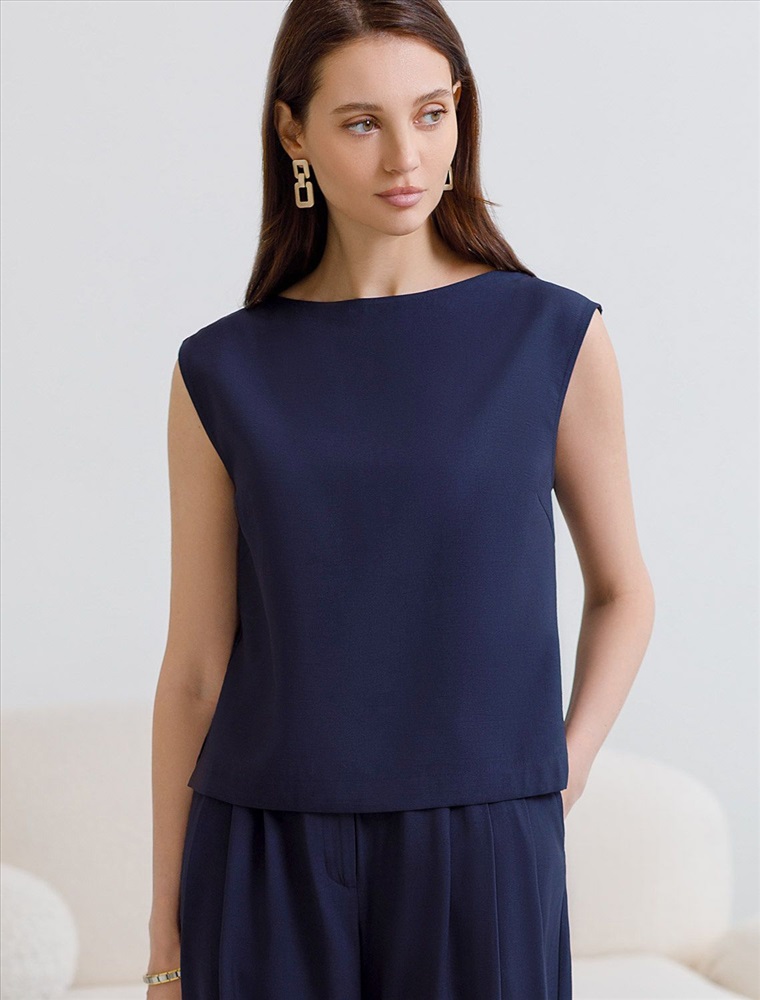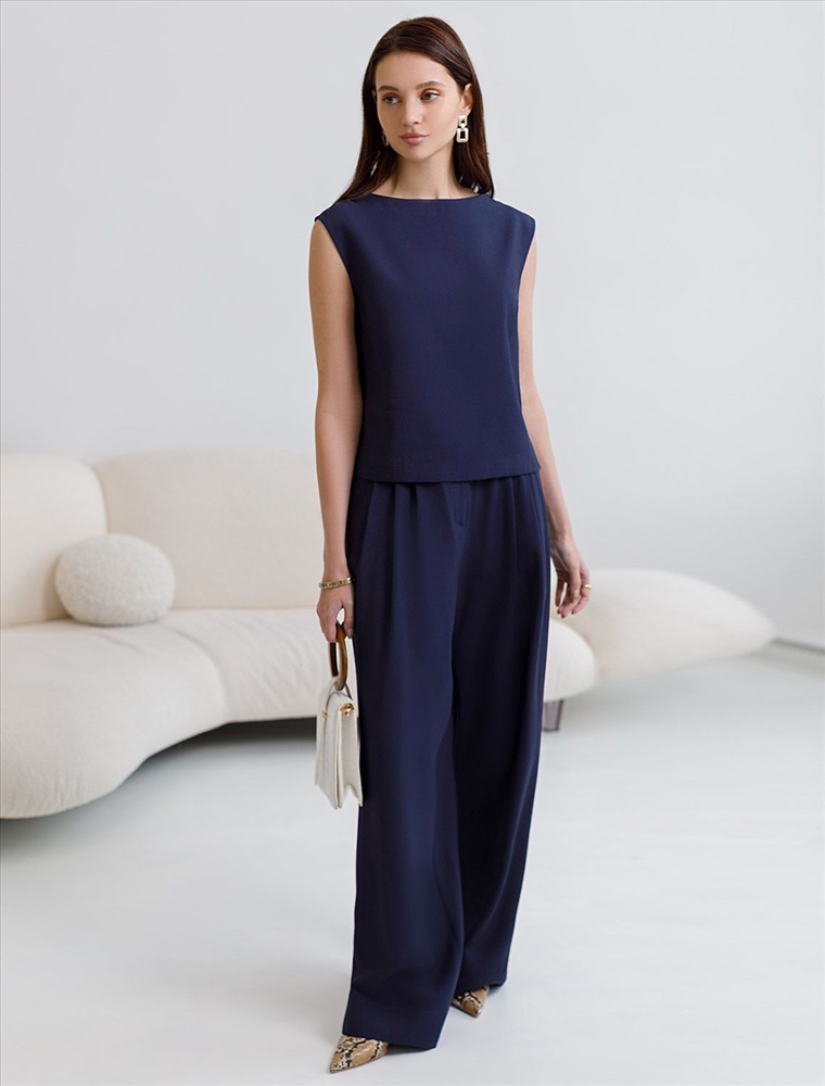 Изысканный топ темно-синего цвета с элегантным вырезом-лодочкой. Лиоцелл это более дорогой и экологичный вариант вискозы, очень прочный и шелковистый. Ткань отличается от регулярной коллекции из лиоцелла - она содержит еще больше лиоцелла (92%), благодаря чему имеет более нежную шелковистую фактуру. Вырез лодочка придает топу утонченность, а небольшие разрезы по бокам добавляют легкости. Простой прямой крой в сочетании с интересными деталями создает стильную и в то же время комфортную вещь. Топ средней длины подойдет для любительниц базовой одежды, которые хотят деликатно повысить градус своего стиля. Этот лаконичный топ будет идеальным выбором для теплого времени года или многослойных ансамблей. Комплект из лиоцелла подчеркнет ваш вкус и статус. Это идеальный выбор для особенных моментов. Такой образ будет уместен на торжественных мероприятиях и приемах, выпускных вечерах, семейных праздниках и свадьбах.
