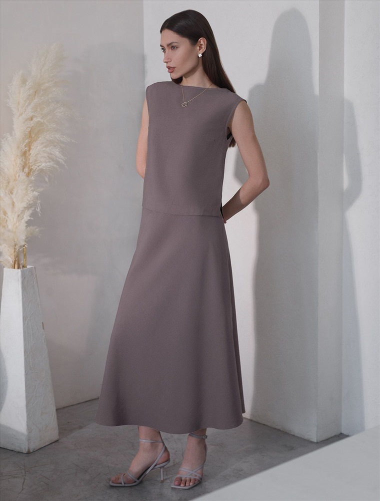 Плотность: 180 Г/м2 Изысканный топ кофейного цвета с элегантным вырезом-лодочкой, выполненный из плотного лиоцелла. Лиоцелл это более дорогой и экологичный вариант вискозы, очень прочный и шелковистый. Ткань отличается от регулярной коллекции из лиоцелла - она содержит еще больше лиоцелла (92%), благодаря чему имеет более нежную шелковистую фактуру. Вырез лодочка придает топу утонченность, а небольшие разрезы по бокам добавляют легкости. Простой прямой крой в сочетании с интересными деталями создает стильную и в то же время комфортную вещь. Топ средней длины подойдет для любительниц базовой одежды, которые хотят деликатно повысить градус своего стиля. Этот лаконичный топ будет идеальным выбором для теплого времени года или многослойных ансамблей. Комплект из лиоцелла подчеркнет ваш вкус и статус. Это идеальный выбор для особенных моментов. Такой образ будет уместен на торжественных мероприятиях и приемах, выпускных вечерах, семейных праздниках и свадьбах. Рекомендуем сочетать с артикулами: D26.208, D24.313